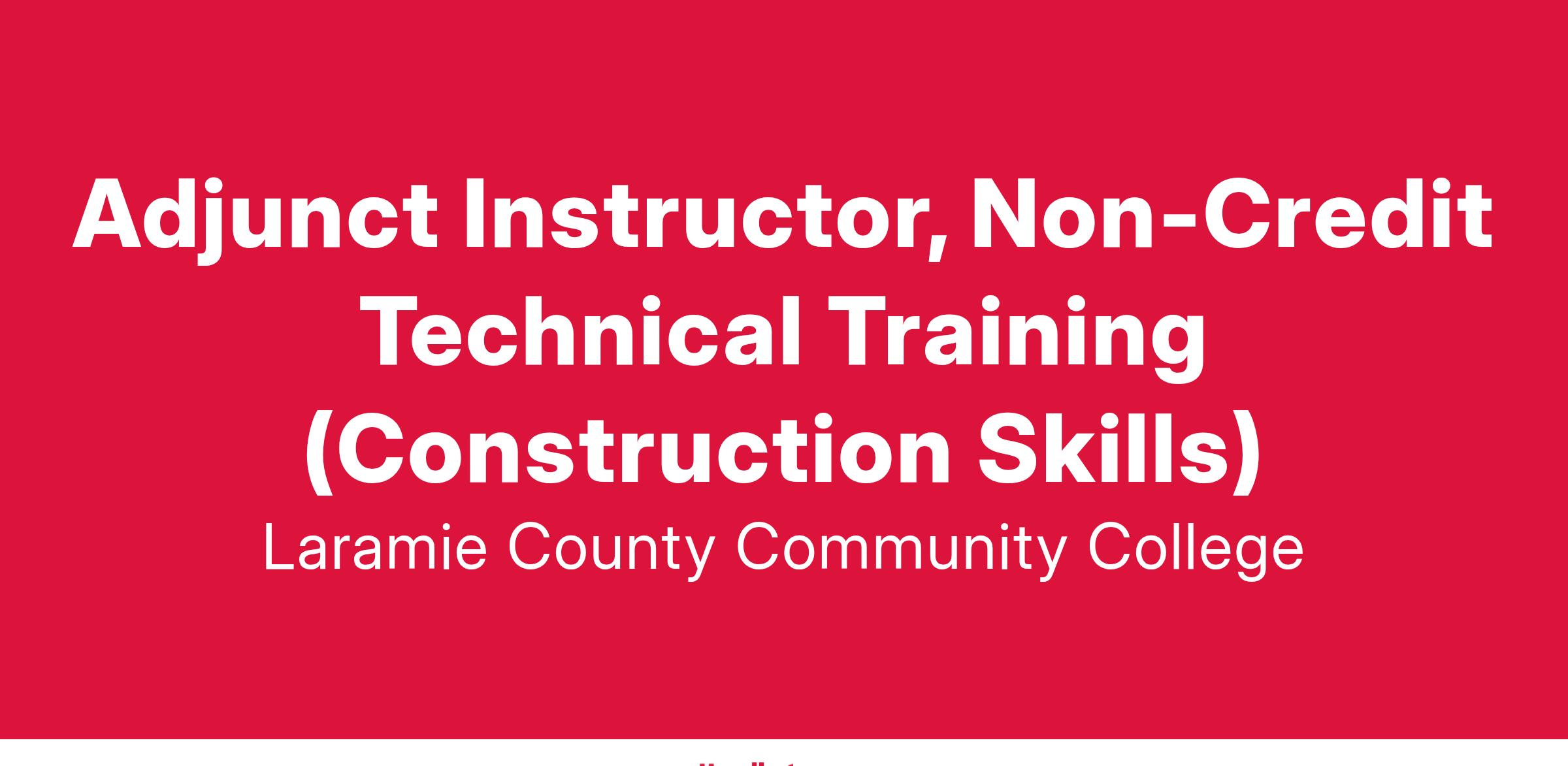 The Adjunct Instructor, Non-Credit Technical Training (Construction Skills) is a part-time, non-benefited position responsible for developing and delivering engaging course content. This position facilitates learning through lectures, discussions, assignments and assessments aligned with the NCCER curriculum and academic standards. The Adjunct Instructor collaborates with department staff and other Non-Credit Technical Training Instructors to ensure course materials and delivery meet the needs of the student population.