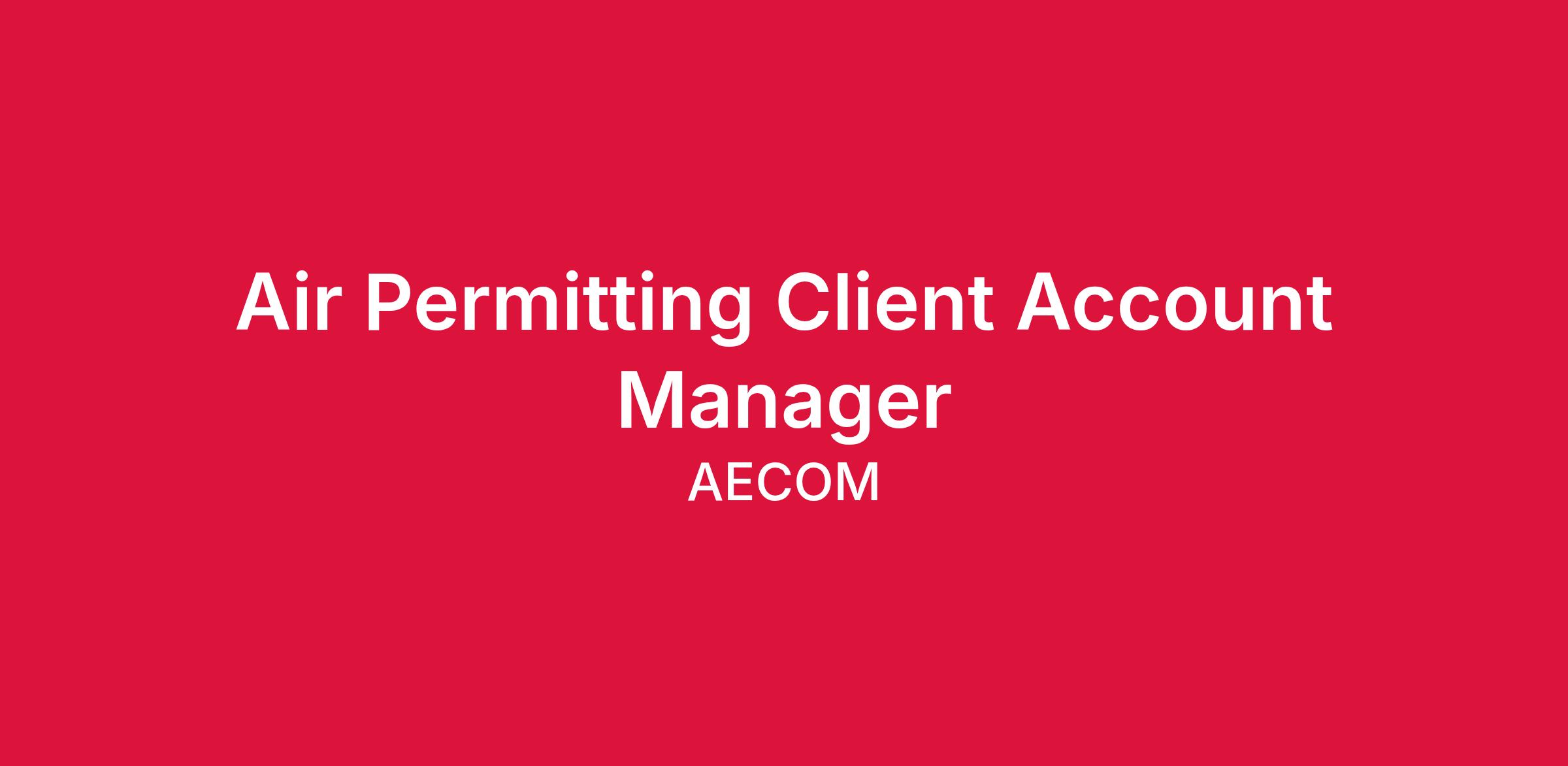 AECOM is seeking an experienced and driven Air Permitting Client Account Manager to join our Air Quality Practice within the Environment Business Line.