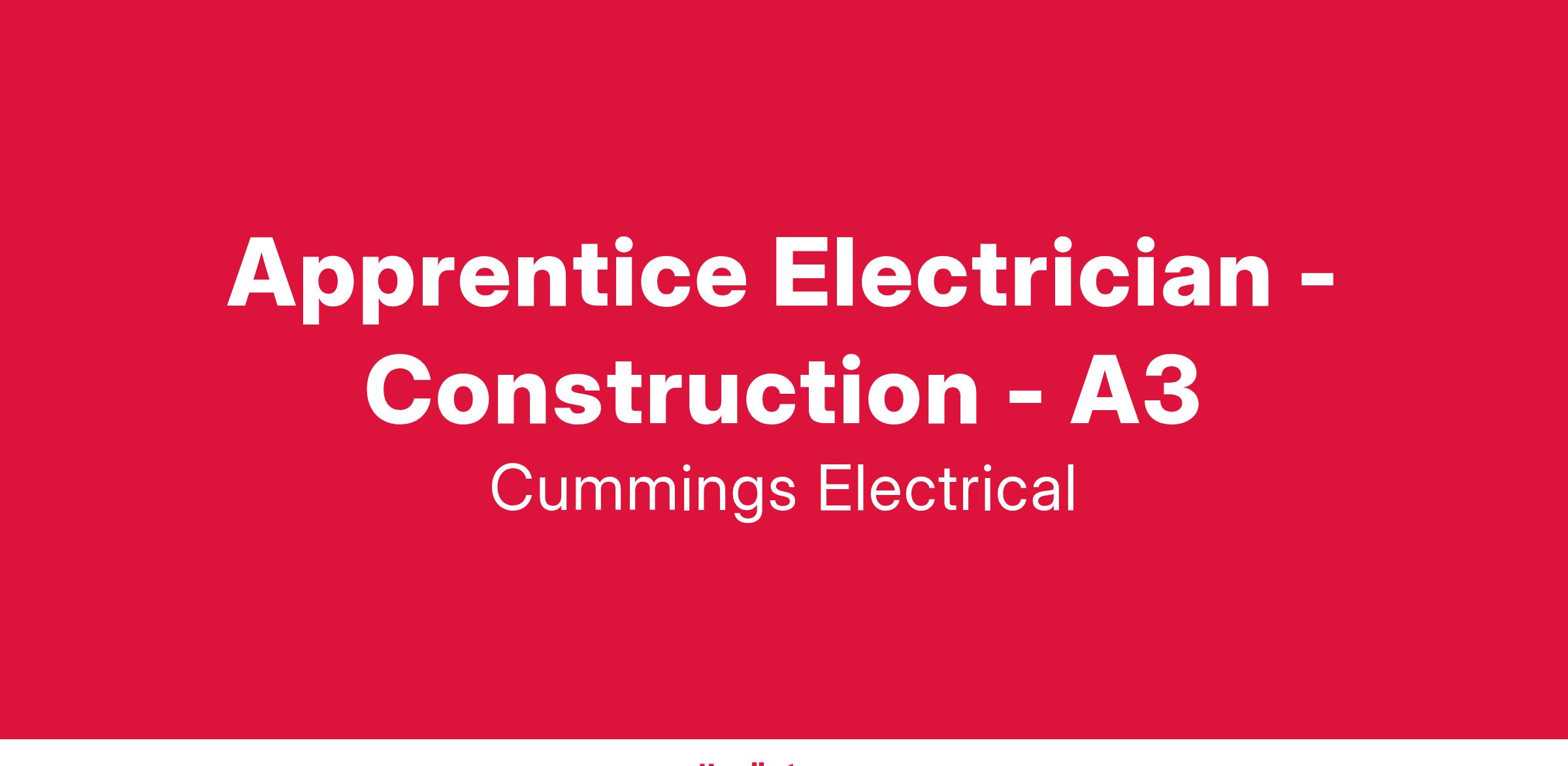 Cummings Electrical, is hiring experienced Apprentice Electricians. A goal is to help you progress your skills and knowledge as you work towards your journeyman license, provide a safe and great work environment and allow you to be proud of the company you represent. Join our highly respected Cummings’ team, advance your skills and knowledge through our industry-leading safety and training programs, enjoy the people you work with and have confidence in a future with a top electrical contractor.