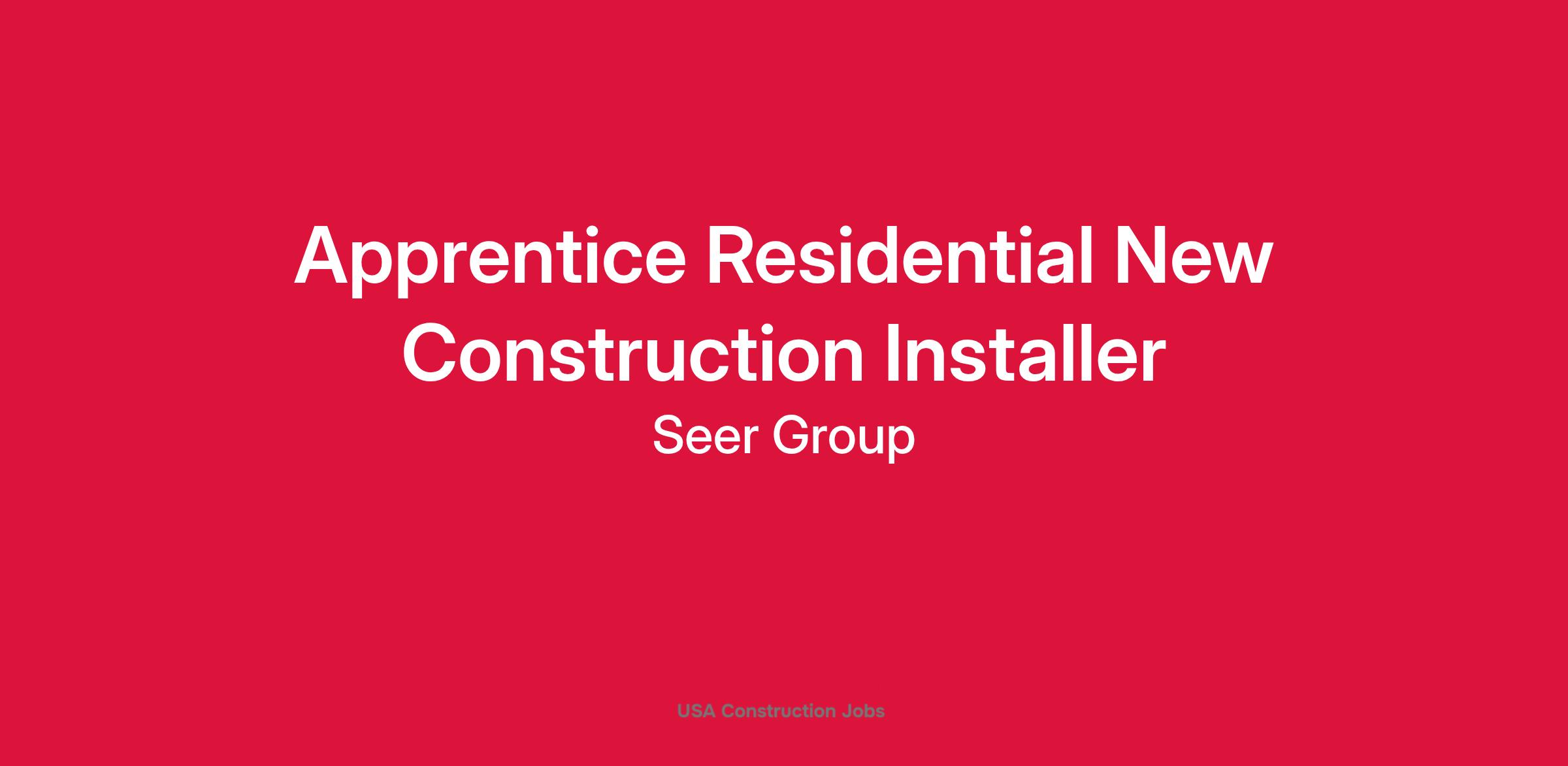 Position: Apprentice Residential New Construction Installer Reports to: Supervisor