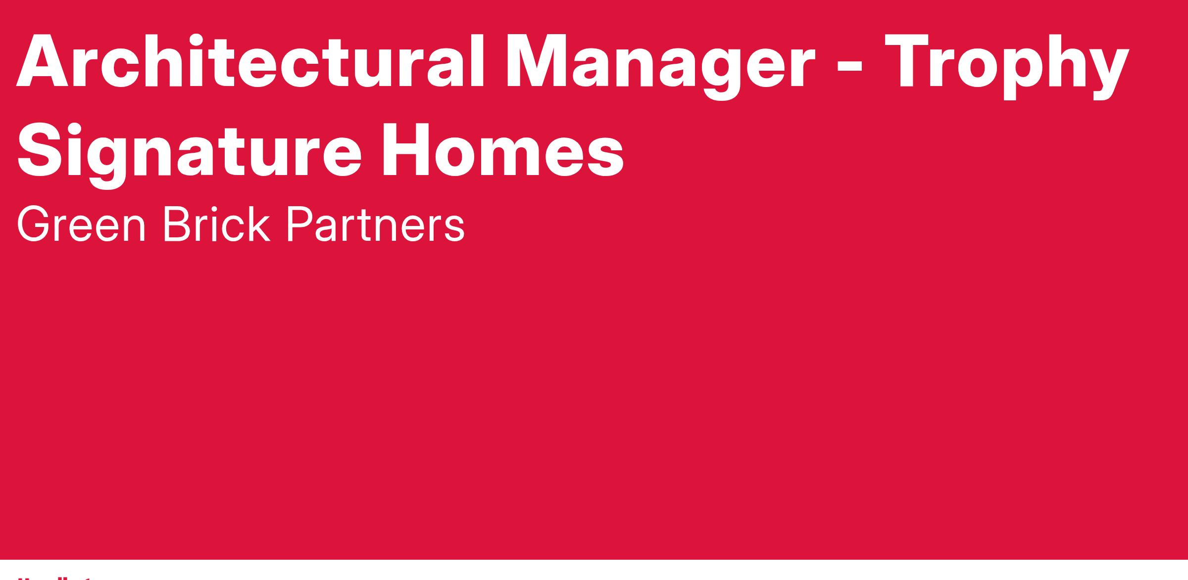 Position Purpose: The Architectural Manager must believe in, practice and initiate all Green Brick Partners values set forth in an acronym we call HOME. They must be Honest, Objective, Mature and Efficient in how he or she approaches their role at Green Brick Partners.