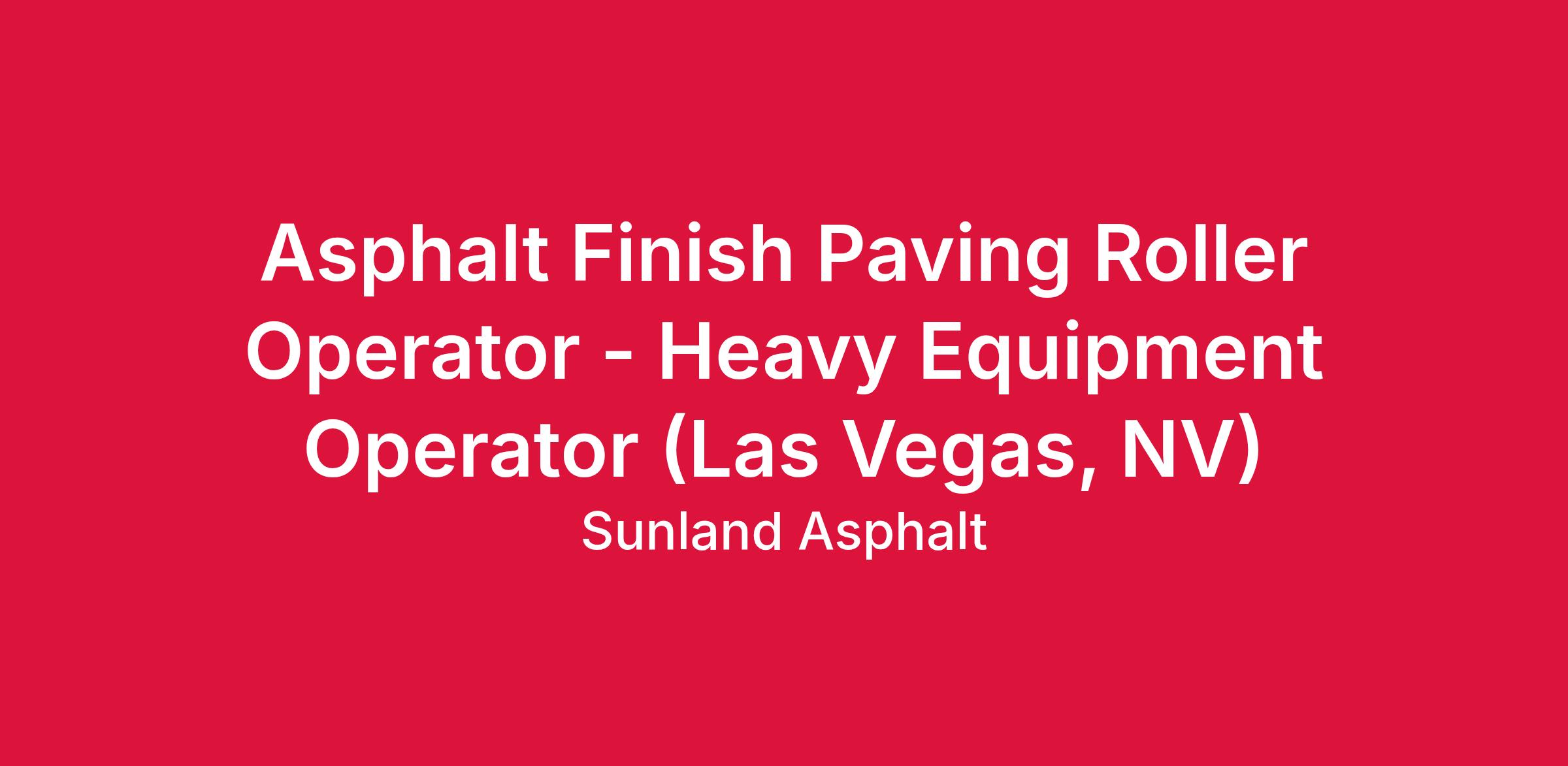 The Heavy Equipment Operator (Asphalt Finish Paving Roller) performs a variety of physical tasks to include operating heavy equipment and machinery and using power tools and/or hand tools for applying asphalt products as defined by each job/project.