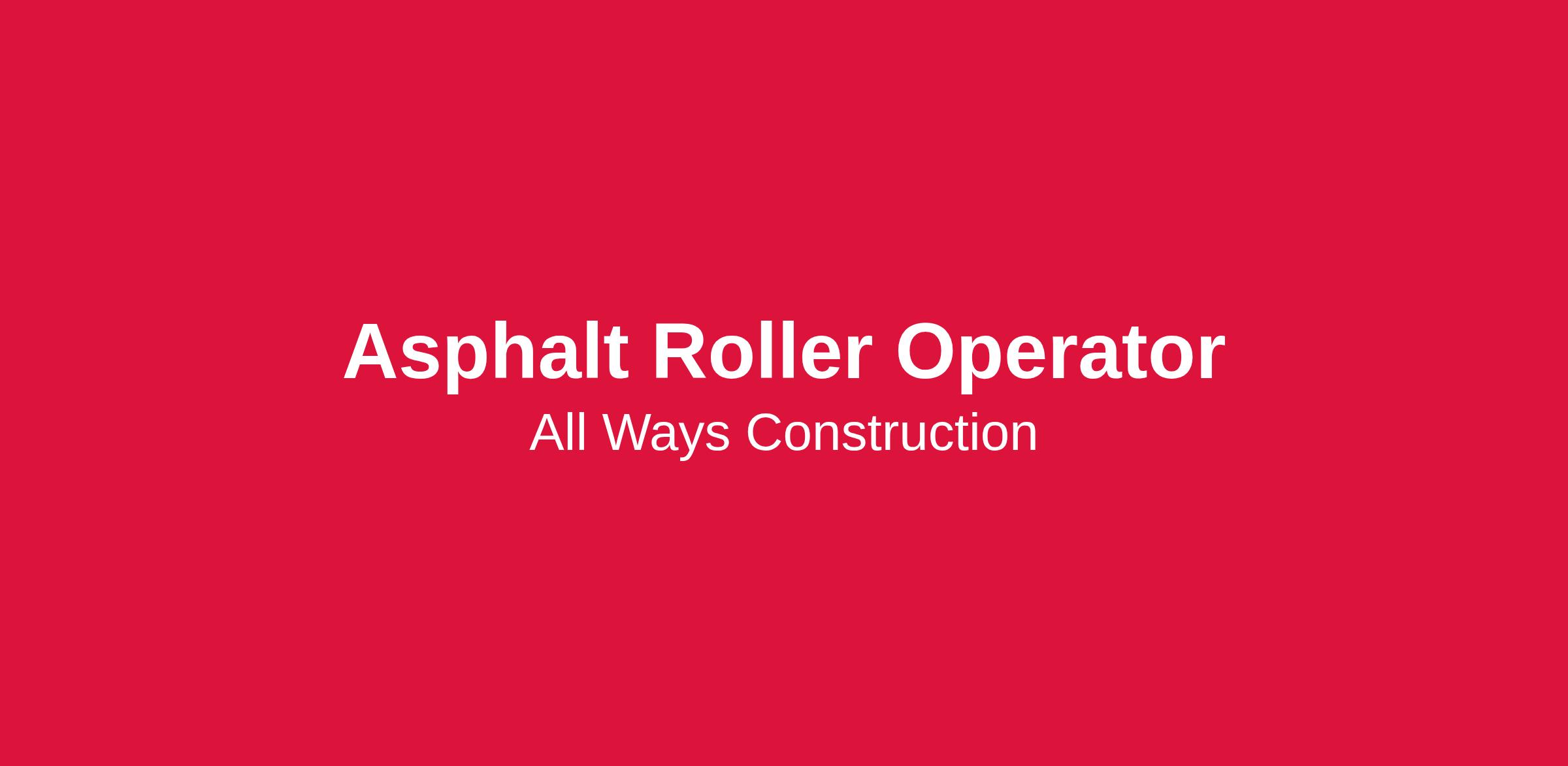 All Ways Construction is looking for a reliable, experienced Roller Operator to join our asphalt paving crew. If you know how to keep compaction tight, follow the pattern, and work as part of a solid crew, we want to talk to you.