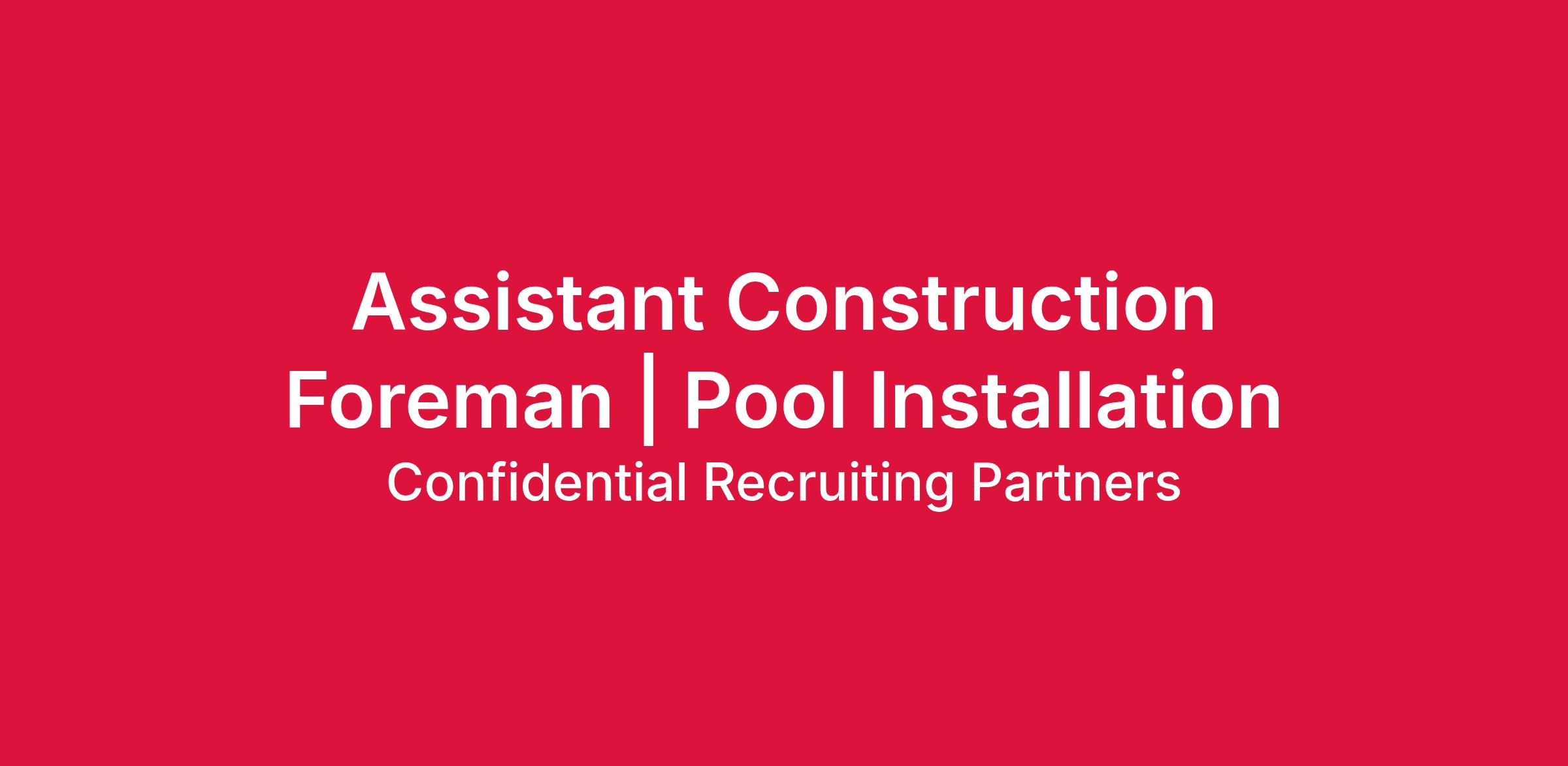 Our client is seeking an Assistant Foreman to support daily pool installation operations, help plan, organize, and execute residential installation projects. It's a hands‑on position ideal for someone with construction or installation experience who wants to grow into a leadership role.