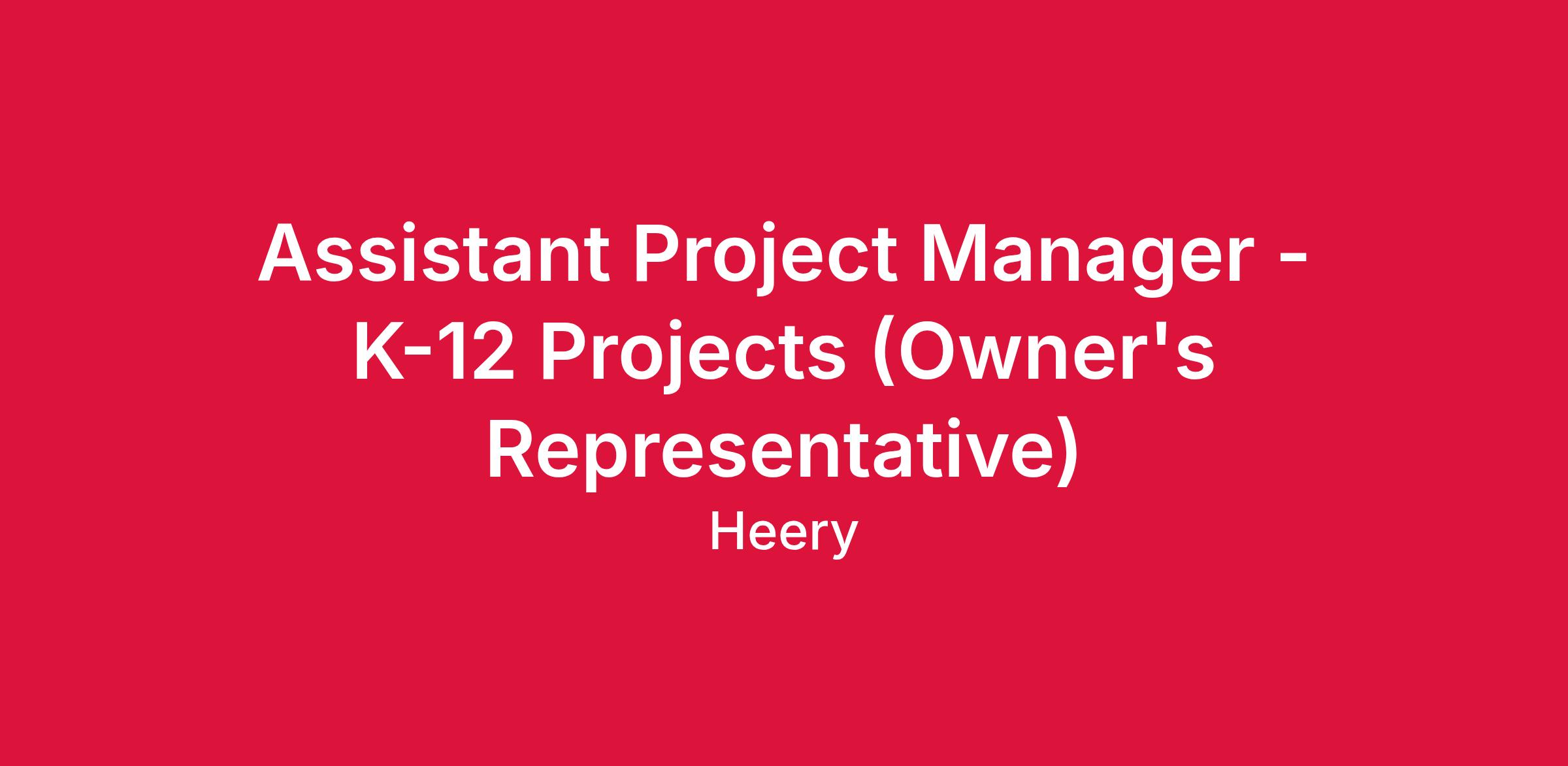 Turner & Townsend Heery is looking for an Assistant Project Manager to support public-sector projects (such as K-12 education and higher education, and municipal) projects. The focus of work will include master planning for school district programs, project management for individual projects, both educational and municipal, and other duties as assigned.