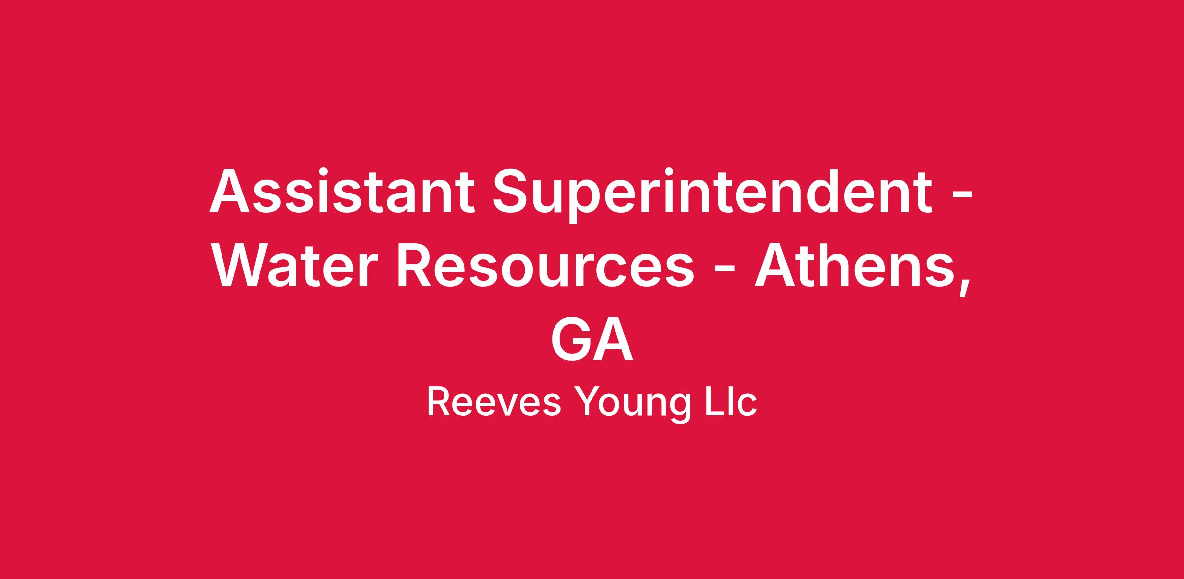 Assistant Superintendent - Water Resources - Athens, GA