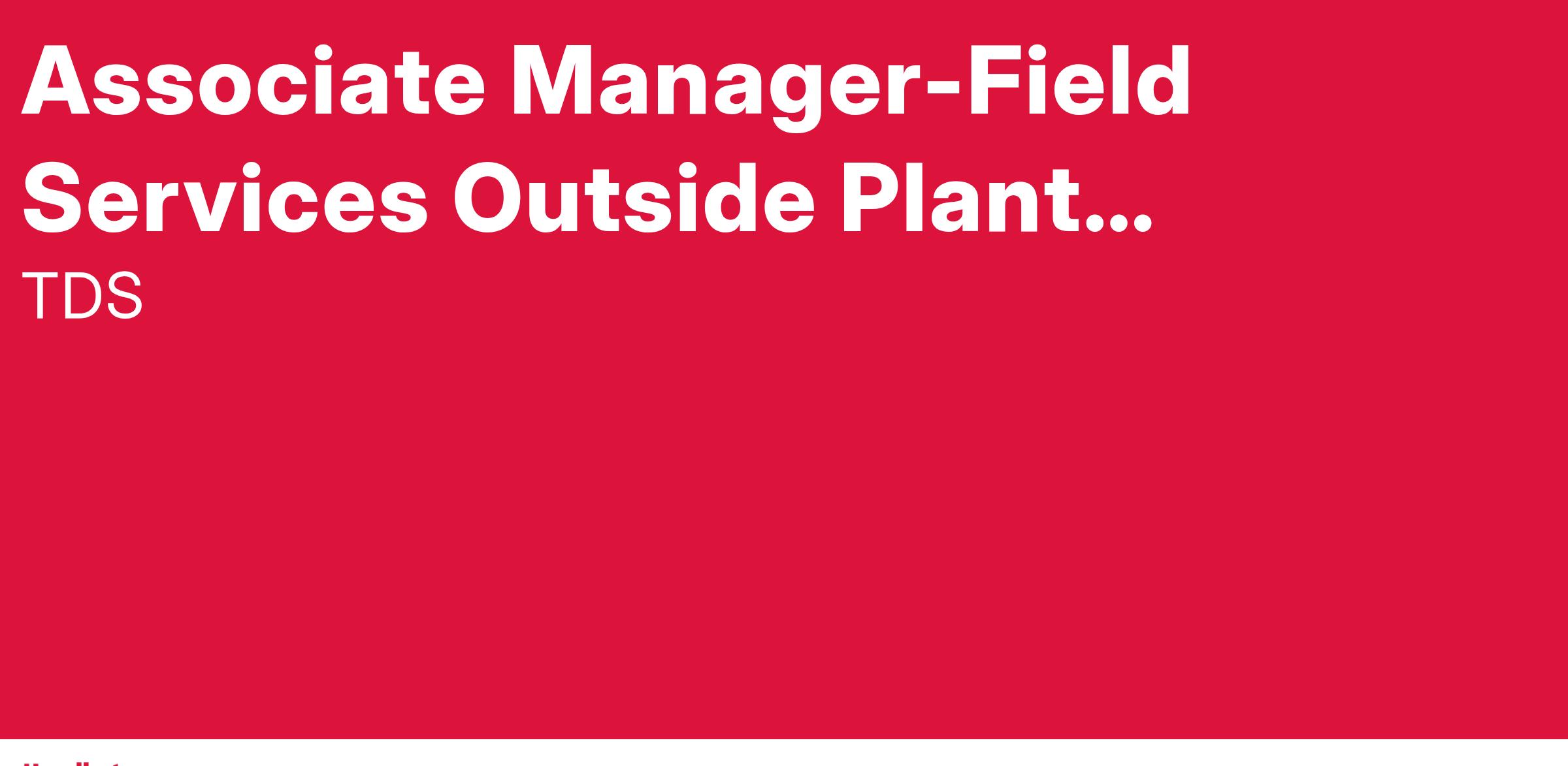 At TDS, we are committed to Equal Employment Opportunity (EEO) and value the diversity of our workforce. We consider all qualified applicants without regard to race, color, age, religion, sex, sexual orientation, gender identity, national origin, disability, status as a protected veteran, or any other status protected by law.