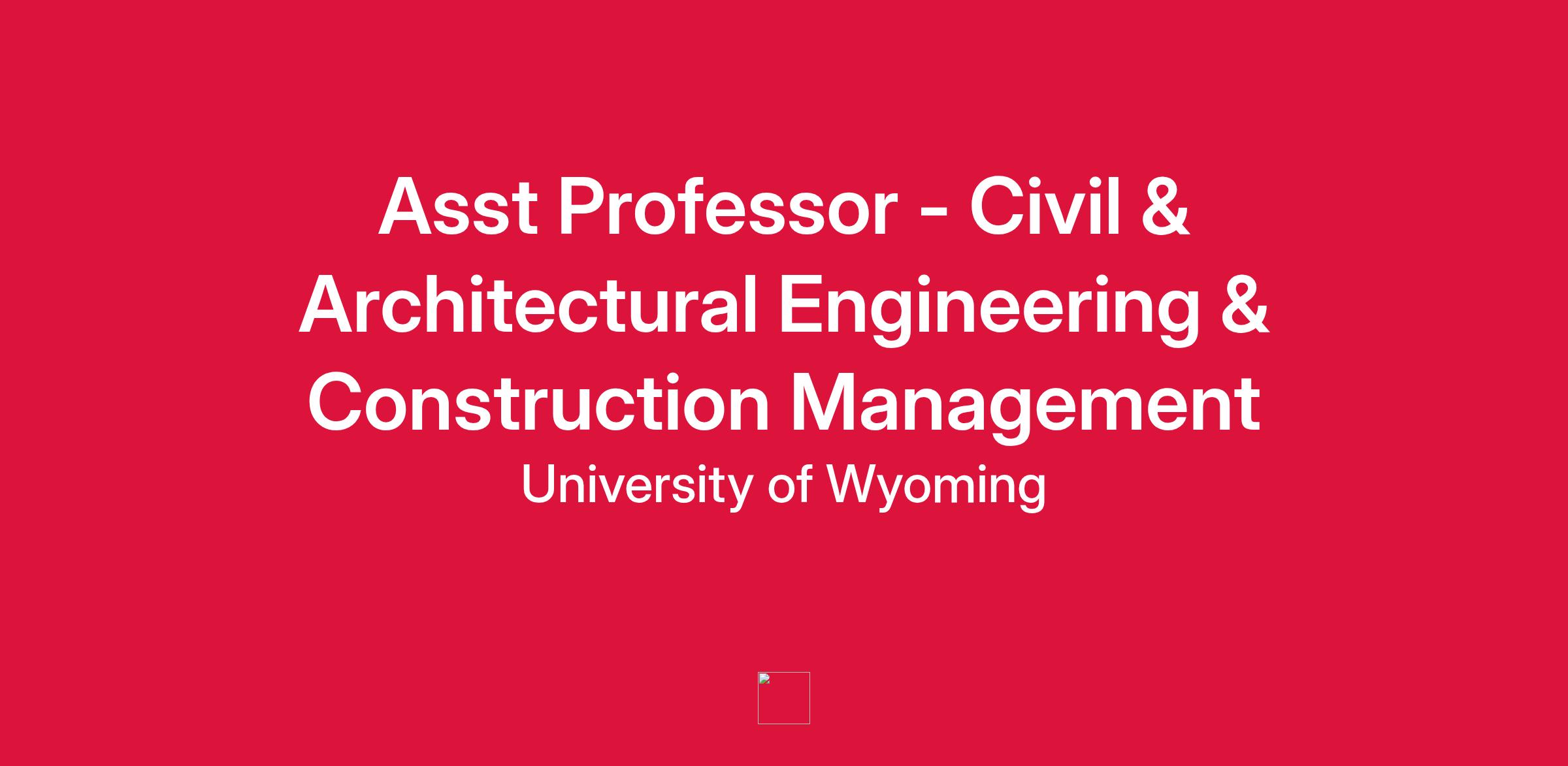 The Department of Civil and Architectural Engineering and Construction Management (CAECM) at the University of Wyoming invites applications for a position as Assistant Professor (tenure-track), to serve the Construction Management program and contribute to the Architectural Engineering program, beginning August 2026. This is a full-time, 9-month, benefited position.