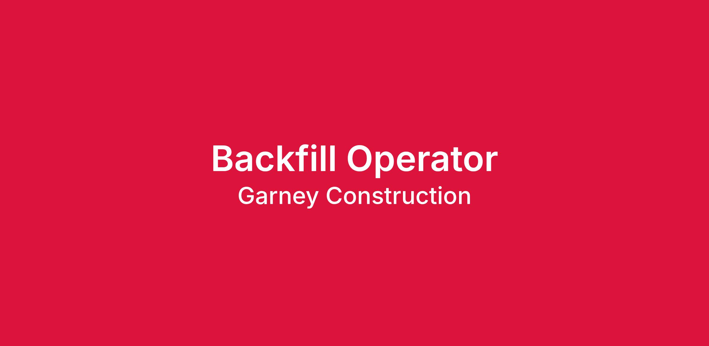 A Backfill Operator job in Louisville KY, is available through Garney Construction. To be considered for this position you must have previous construction experience. As an operator, you will operate machinery to perform activities such as excavating, backfilling, trenching, ditching, clearing, looming, fine grading, and final clean up. The Operator may perform functions of a laborer as required.
