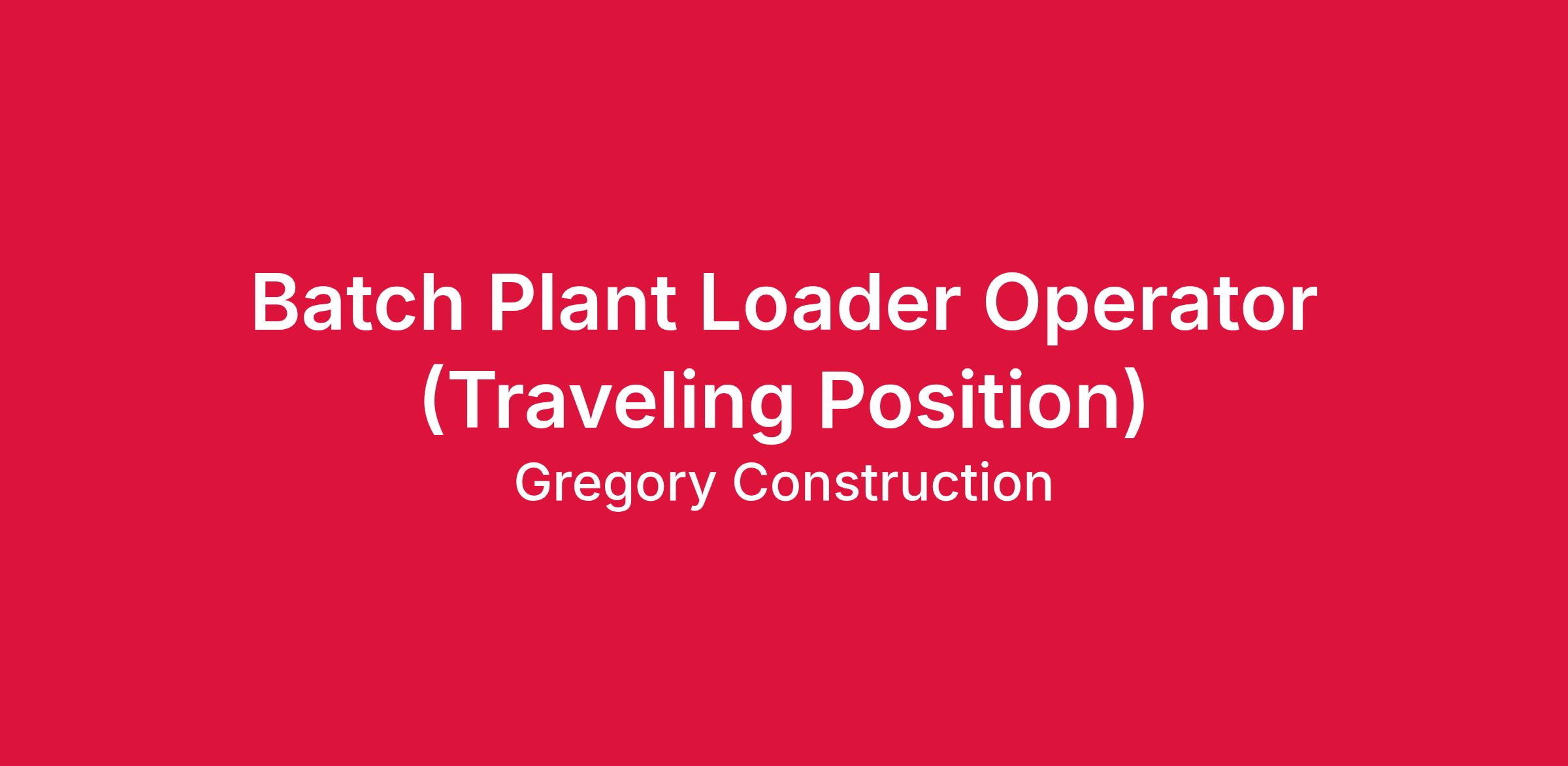 ob Title: Batch Plant Loader Operator (Traveling Position)
