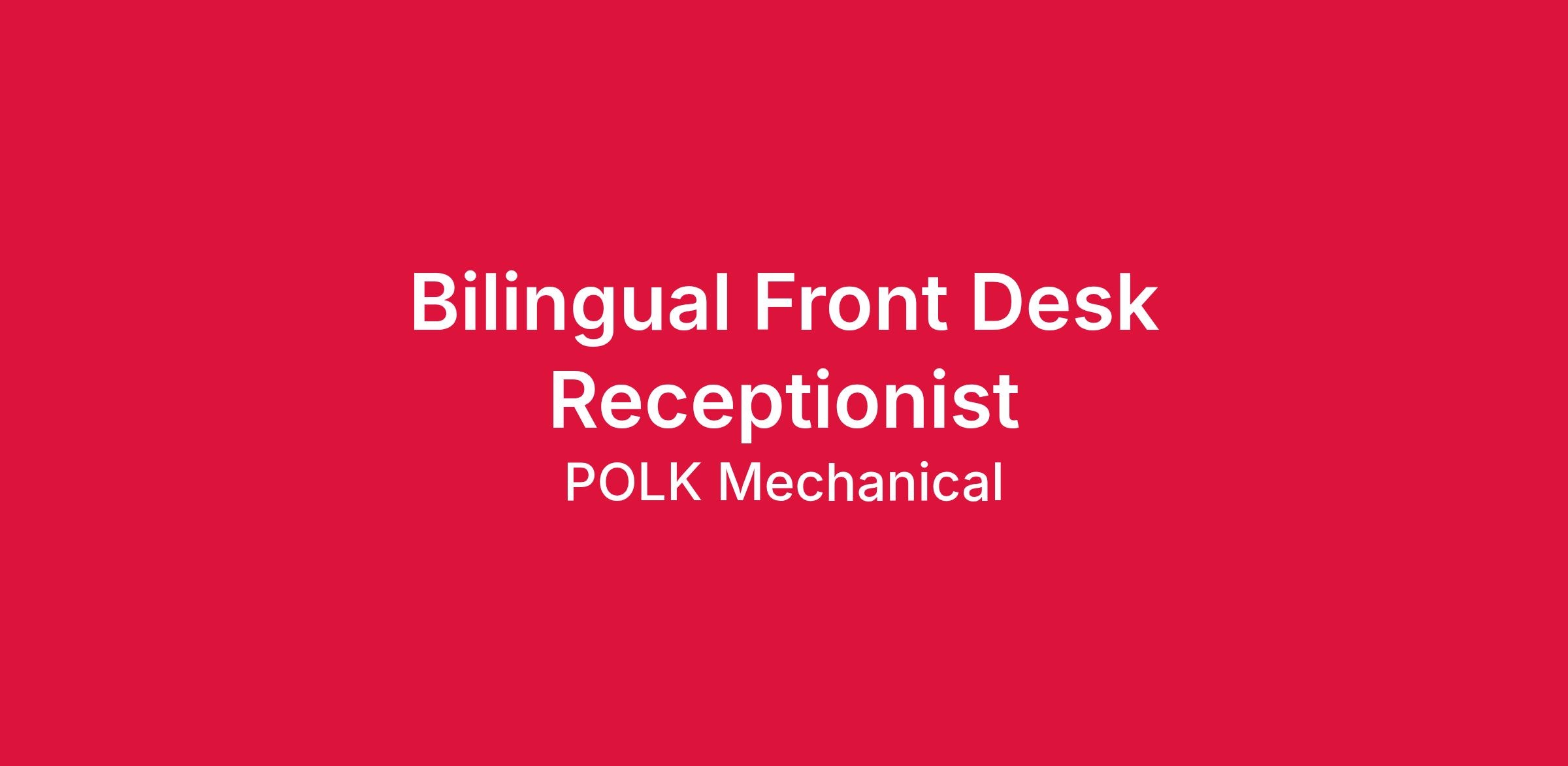 Our team is seeking a dynamic Bilingual Front Desk Receptionist in Grand Prairie, Texas! Are you a team player, detail driven, and have a passion for customer service? If so, let us know you are interested in joining the Polk Nation Team!