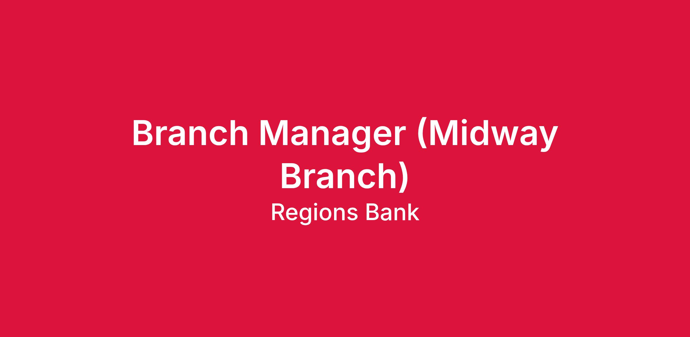 At Regions, the Branch Manager is responsible for maintaining an engaged, operationally sound, and high performing team dedicated to improving the financial wellness of our customers. This position acts as a player and coach, oversees branch operations, directly manages associate performance, and provides guidance as needed to ensure associates are helping customers reach their financial goals by understanding and meeting customer needs. Branch Managers are expected to drive branch performance results through strong individual sales performance in addition to ensuring the team meets and exceeds branch sales, quality, and service goals while maintaining an operationally efficient and compliant branch.
