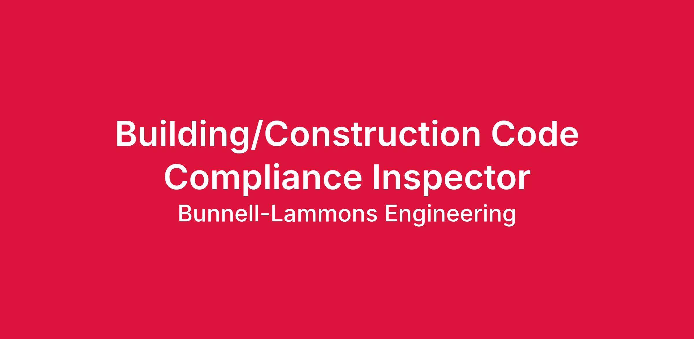 Bunnell-Lammons Engineering, Inc. (BLE) has an opening for a Code Compliance Inspector to join our team in Columbia, SC. The primary responsibility of this position is to provide Building, Mechanical, Plumbing, and Electrical code compliance inspections.