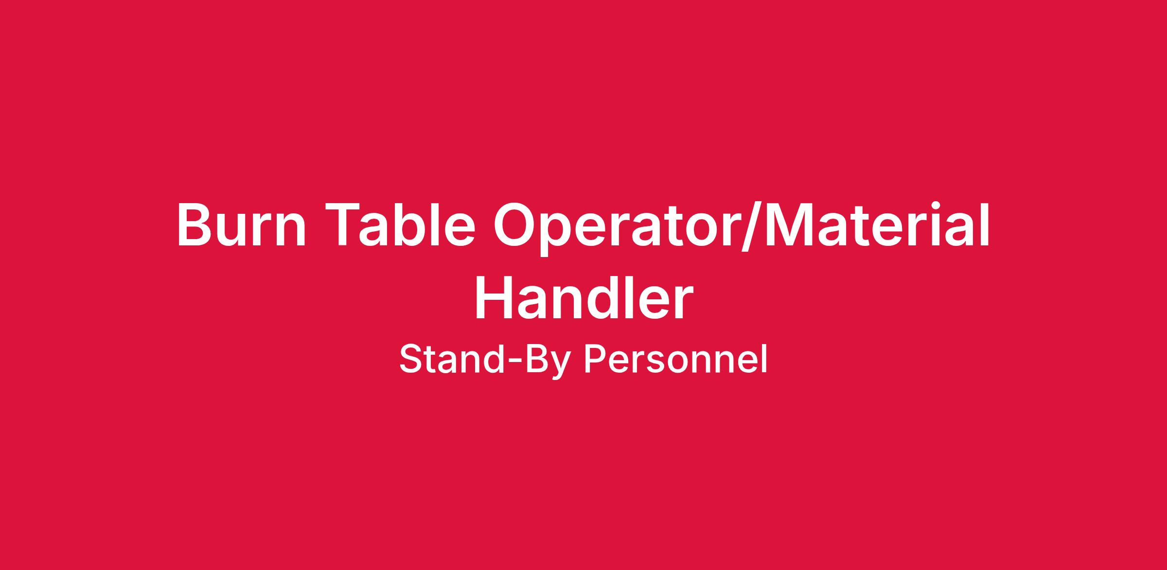 The Burn Table Operator/Material Handler role includes: