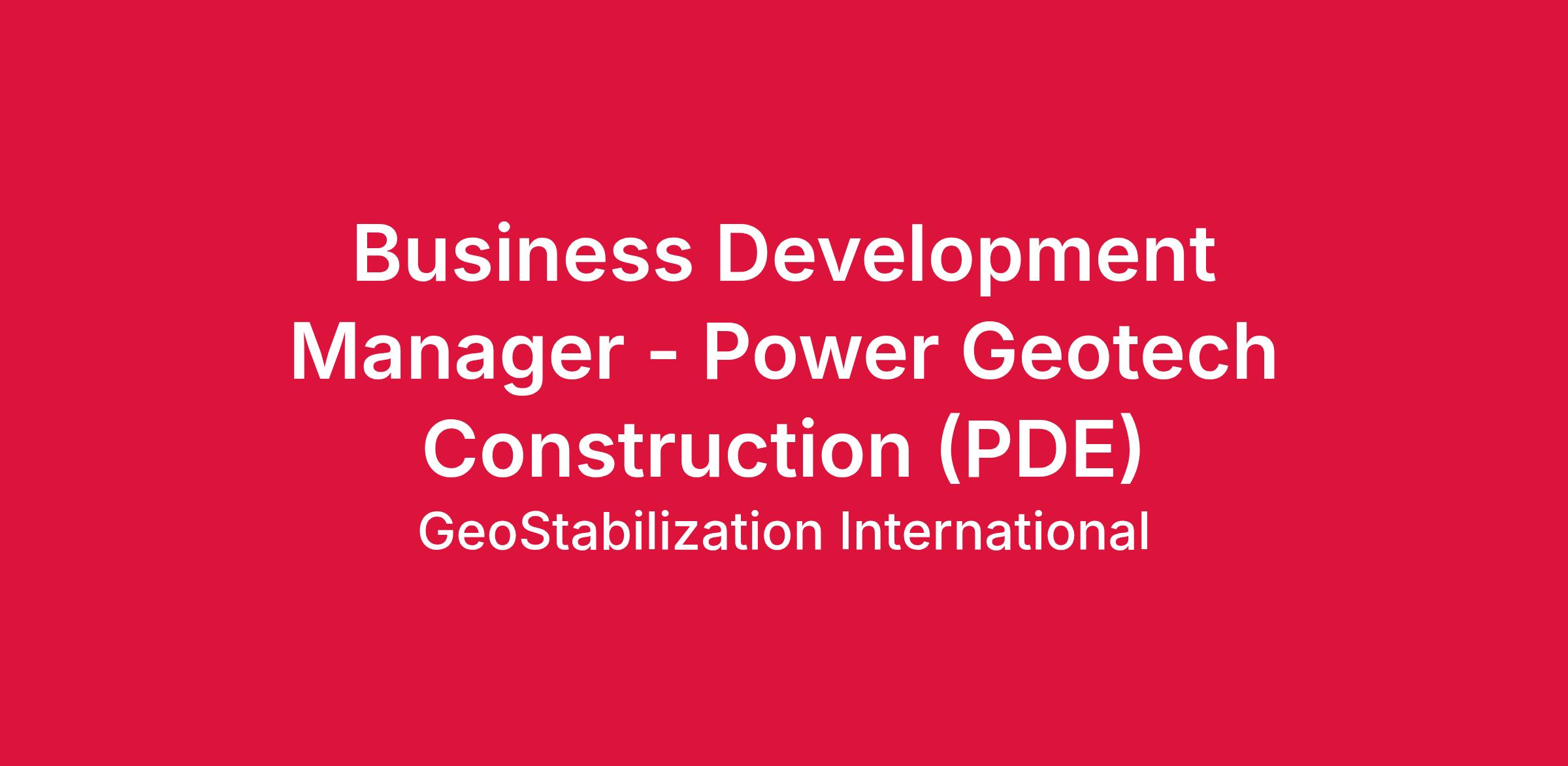 Business Development Manager - Power Geotech Construction (PDE)