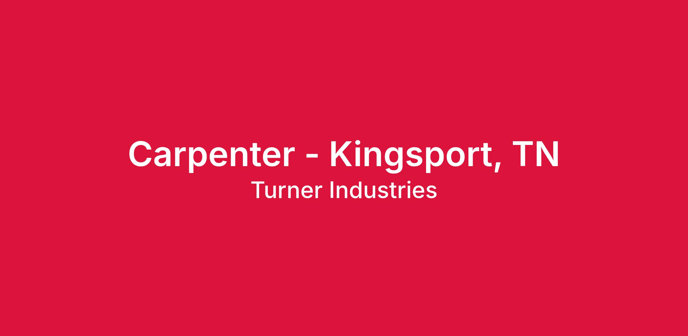 Turner Industries Group is looking for experienced Carpenters for work in the Kingsport, TN area. This position constructs, erects, installs, fabricates, dismantles and repairs structures, formwork and fixtures of wood, metal forms and associated accessories.