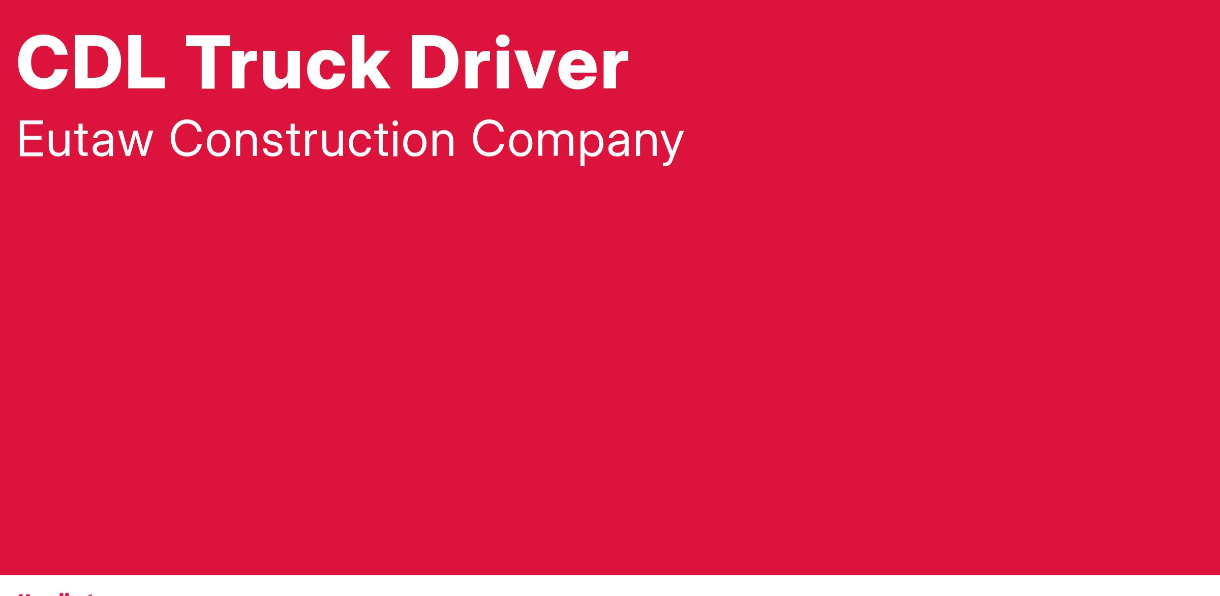 Eutaw Construction Company, Inc. is currently seeking CDL Truck Driver(s) to serve on our construction projects. The applicant must possess a strong work ethic and be self-motivated.