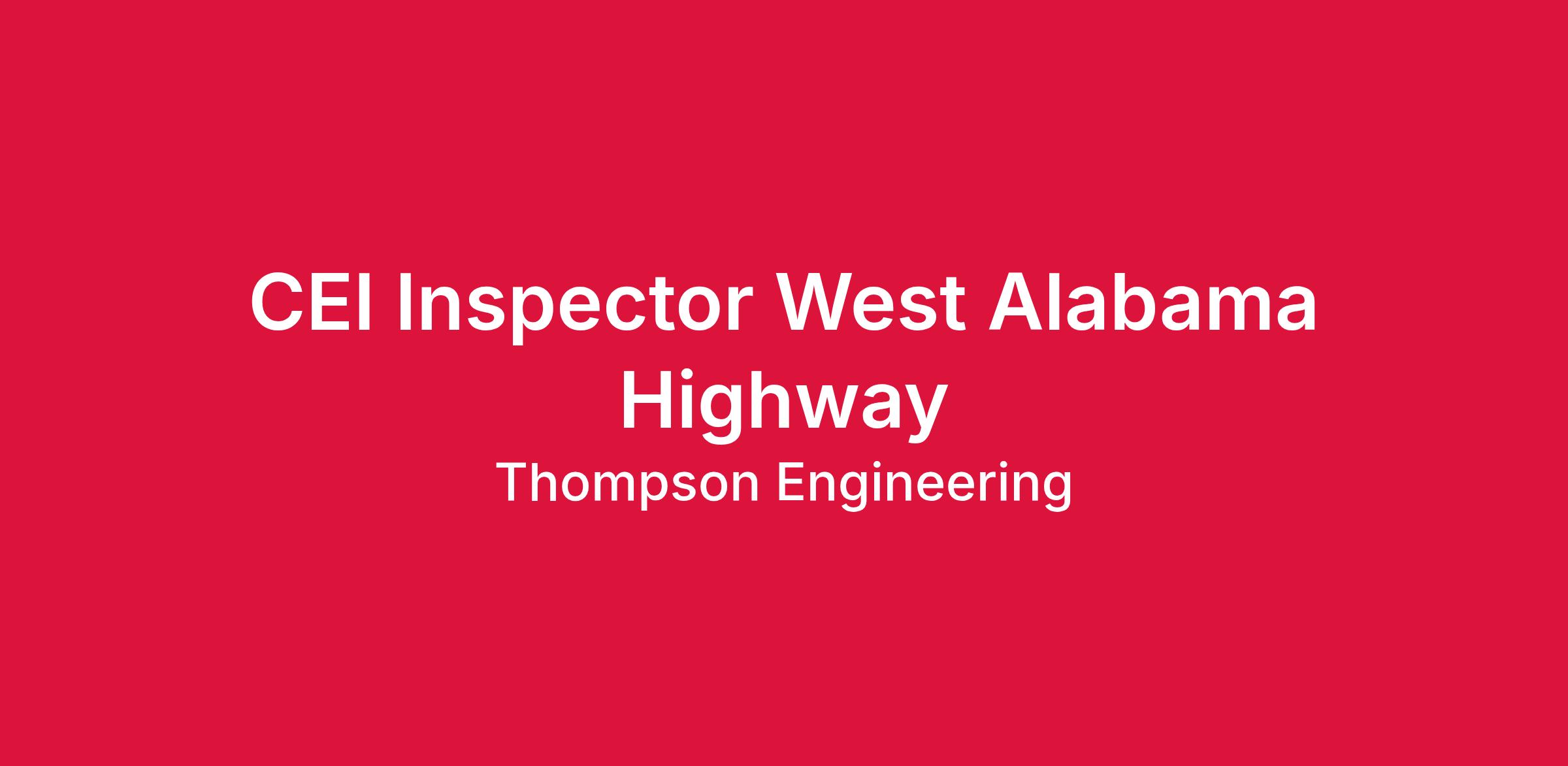 Thompson Engineering is seeking a Construction Engineering & Inspection (CEI) Inspector to join our Quality Acceptance Team on the West Alabama Highway Design-Build Project.
