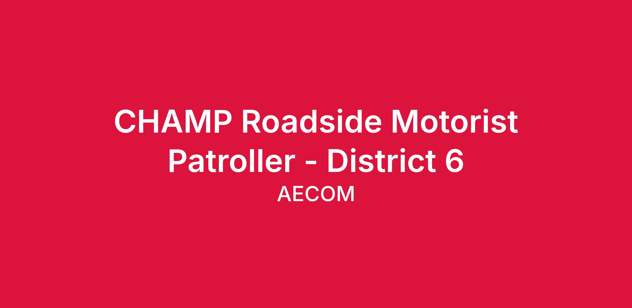 AECOM is actively seeking highly motivated individuals to train and function as roadside assistance maintenance Operators supporting the Georgia Department of Transportation's CHAMP program. Operators play a key critical role in safeguarding motorists traveling the interstates by ensuring roadways are clear of debris, reporting highway maintenance issues and assisting stranded motorists, among other duties. Starting pay is $18hr.