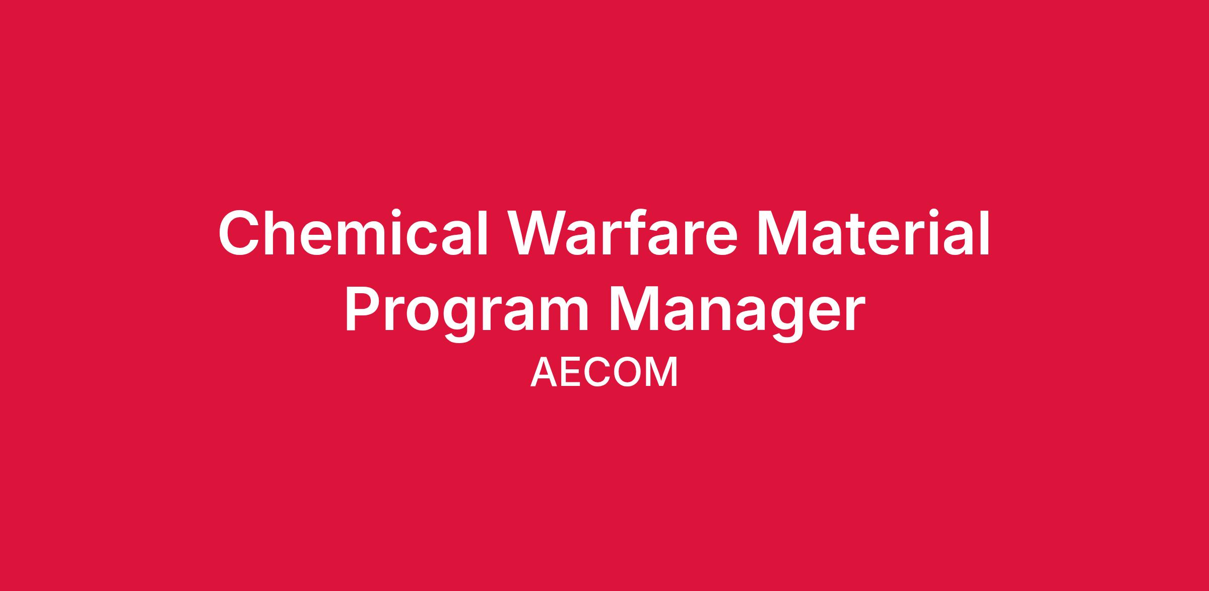 AECOM has a need for a Chemical Warfare Material Manager to based anywhere in the United States.