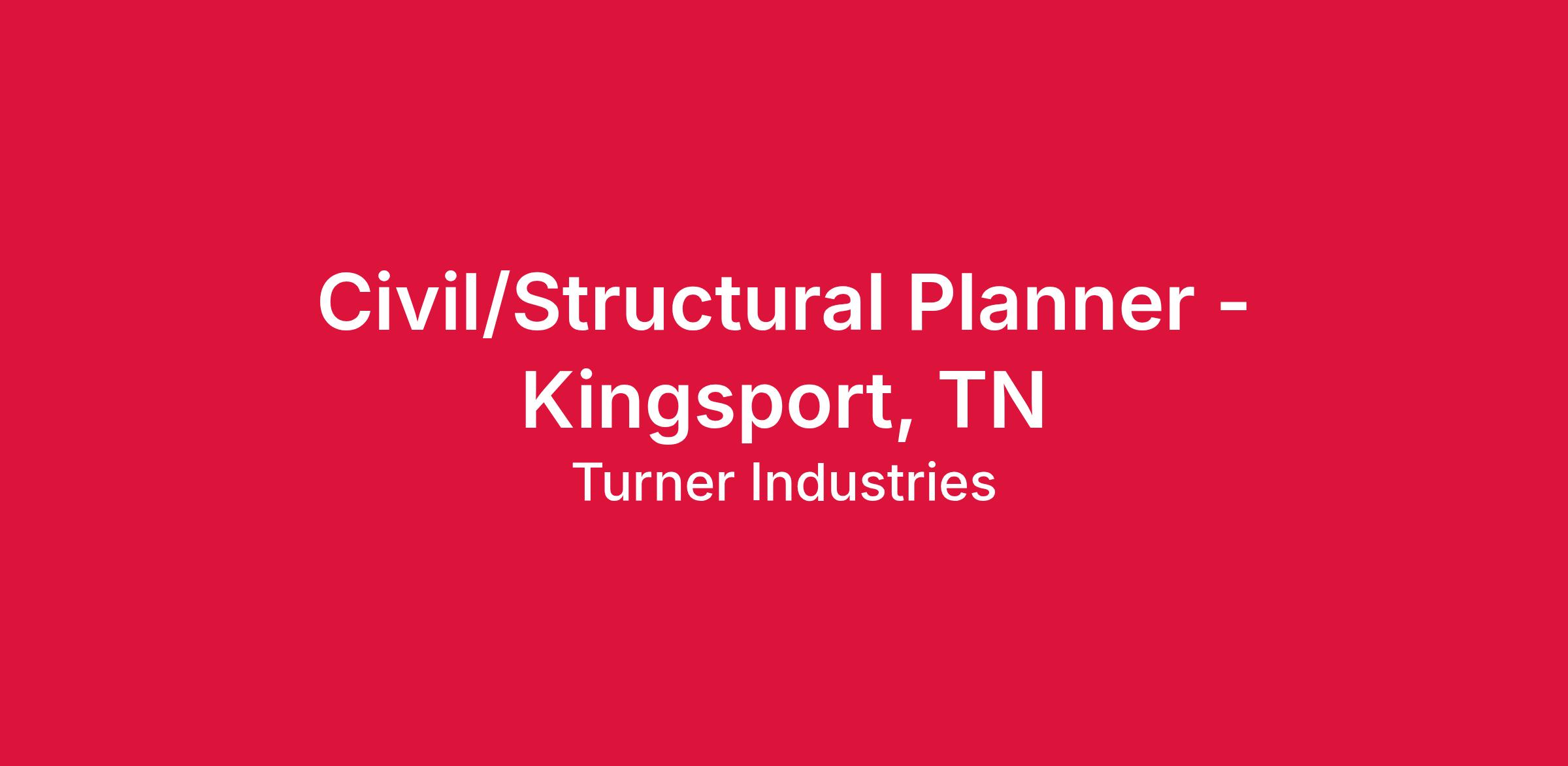 Turner Industries Group, LLC has an opening for a Civil/Structural Planner to join our team in the Kingsport, TN area. As a Planner you will need relevant experience with equipment, piping, structural steel and light civil. Your responsibilities may include walking down job scope requests, estimating labor hours for multiple disciplines, developing work plans, and creating job plan packages. The candidate may be asked to plan Maintenance, Turnarounds, Small Capital Projects, or a combination of the three.