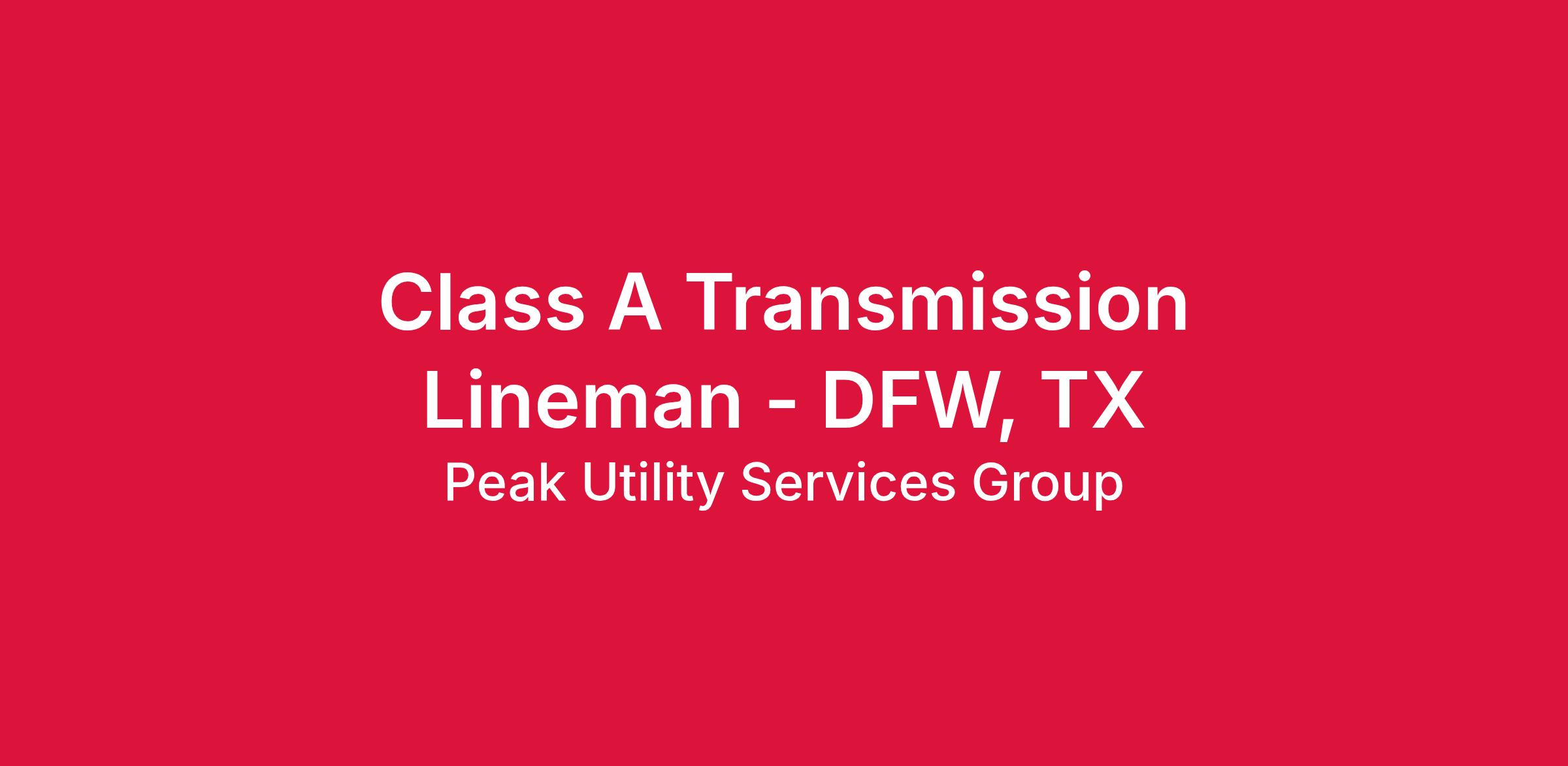 Position Title: Transmission Lineman – A Class