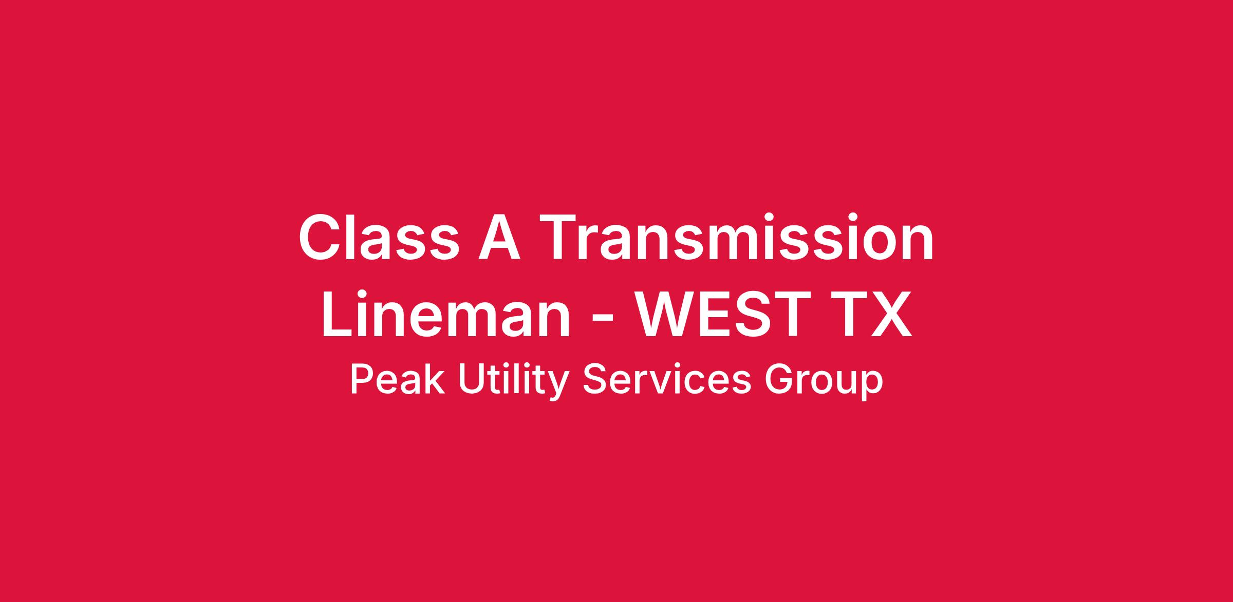 Position Title: Transmission Lineman – A Class
