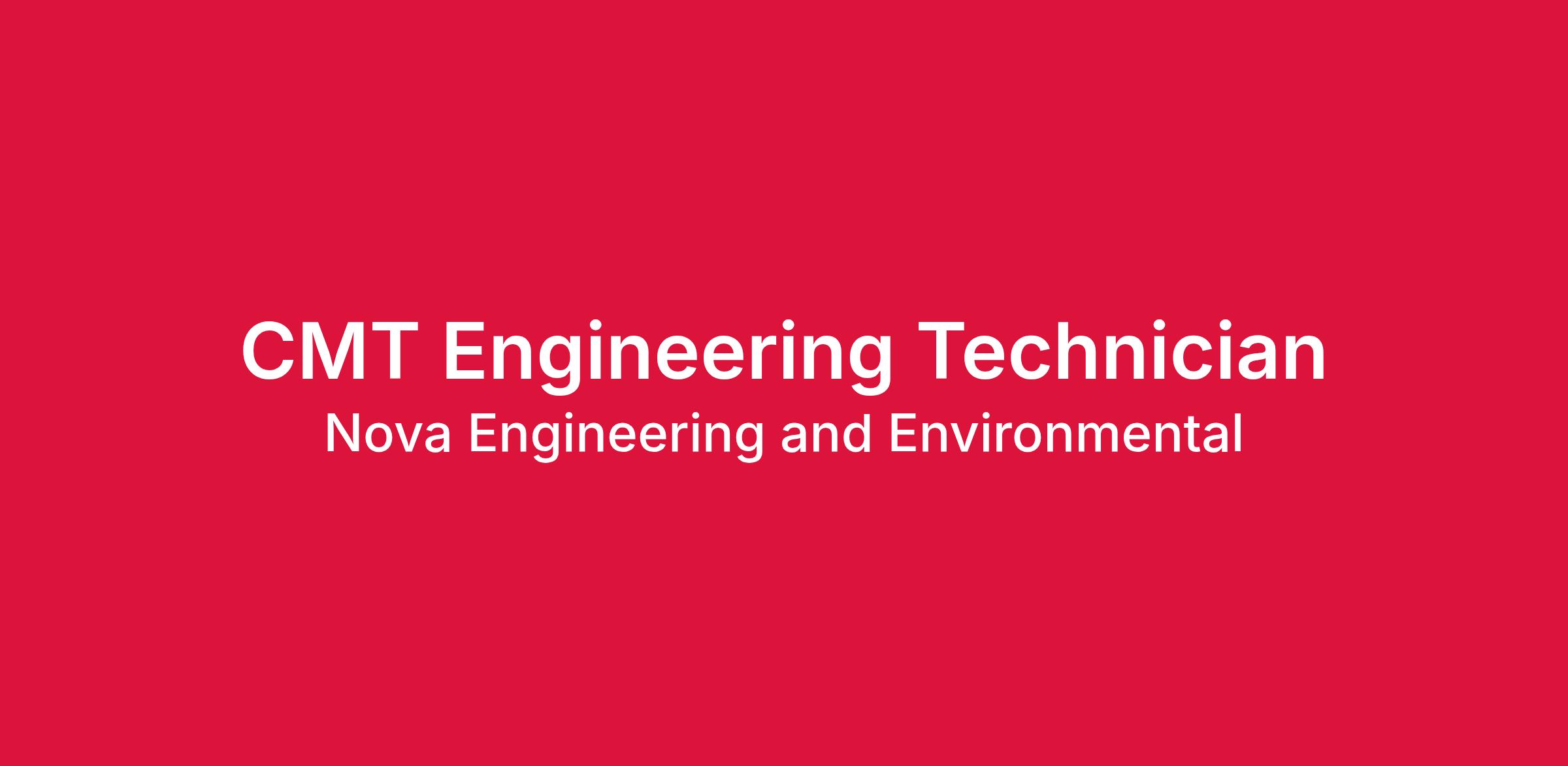 NOVA Engineering is seeking full-time a CMT Engineering Field Technician or Special Inspector for NOVA's Norcross, GA office to work on projects though out the Atlanta metropolitan statistical area (MSA).