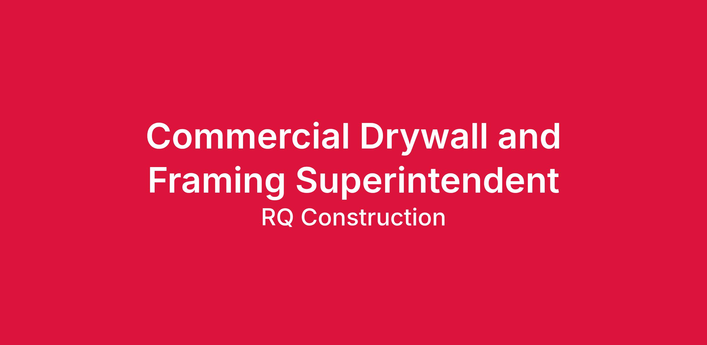 RQ is a national Design-Build contractor with nearly $300M in active commercial and Department of Defense projects. We are seeking an experienced Commercial Framing & Drywall Superintendent to support our Self-Perform Building Trades team across the Southeast.