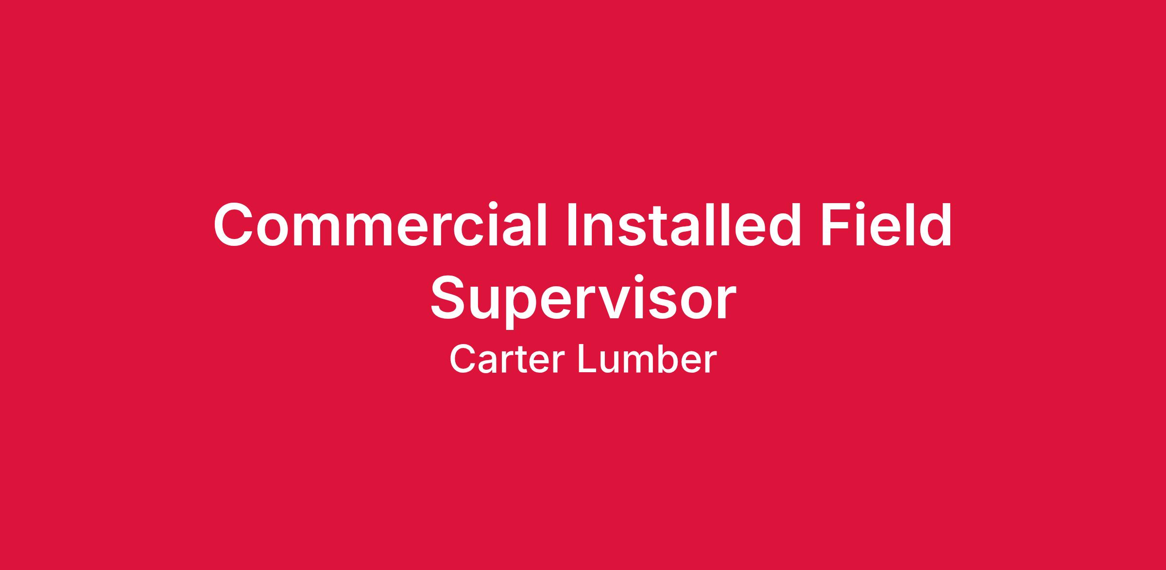 A Carter Lumber Commercial Installed Field Supervisor is responsible for the development, implementation and supervision for all large commercial-based installed jobs. This is accomplished by keeping lines of communication and information open between the corporate office and the field to ensure production is accurate and timely. Effective communication with the field and internal departments are mandatory for the success of this position.