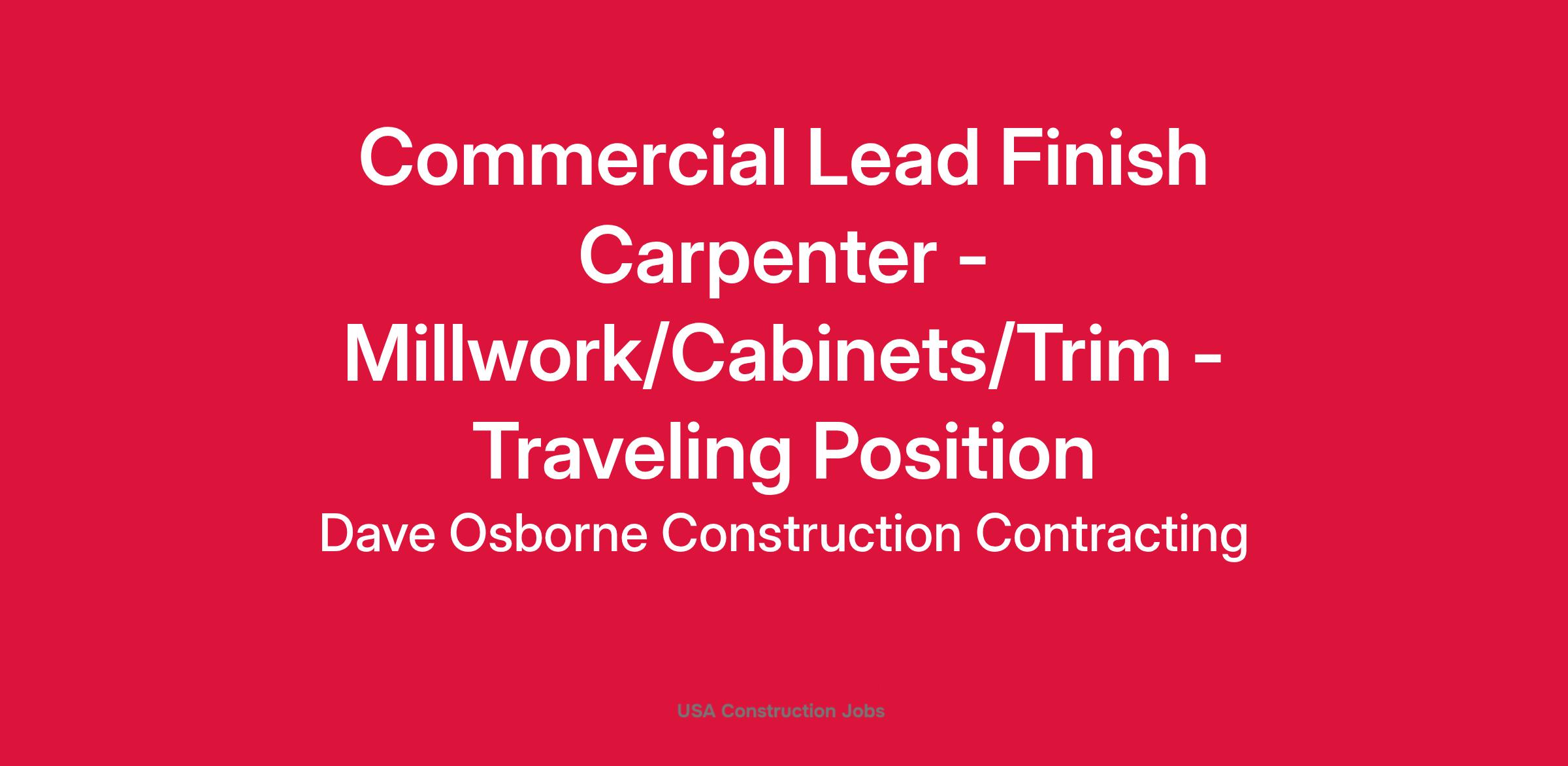 We are a leader in Millwork, Cabinet and Fixture Installations seeking experienced and enthusiastic working Lead Finish Carpenters who can perform in a diverse range of situations overseeing and installing fixtures, casework and millwork in commercial and retail environments.