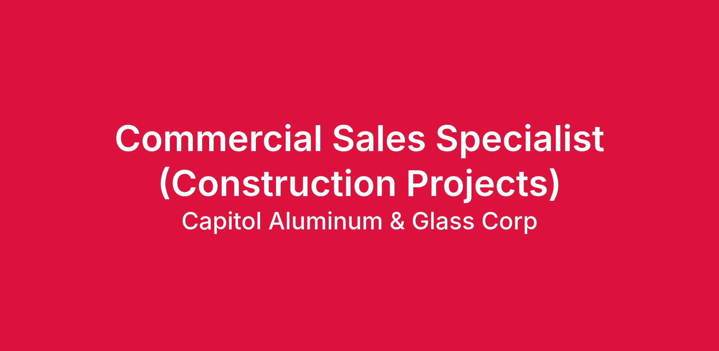 Capitol Aluminum & Glass Corp. is seeking a Construction Sales Specialist to further promote the existing products in our niche market. This position is built for a sales performer to handle a territory, build deep industry relationships, and deliver creative solutions for projects. It involves sales of architectural windows, doors, storefront and curtainwall products and services to prospects at a given territory in Ohio and surrounding states as needed. The ideal candidate must have enthusiasm, confidence to thrive in a fast-paced construction environment, and high ambition levels with great people skills. Training in product line and industry provided.