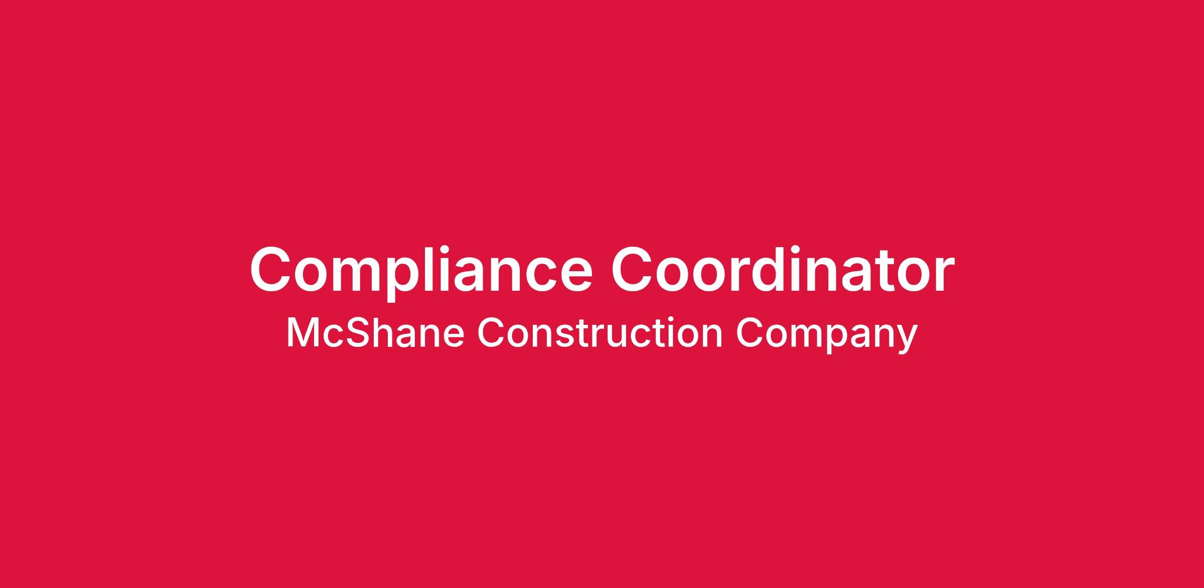 McShane Construction is seeking a proactive professional with an eye for detail to oversee recordkeeping and document control as serve as Compliance Coordinator.