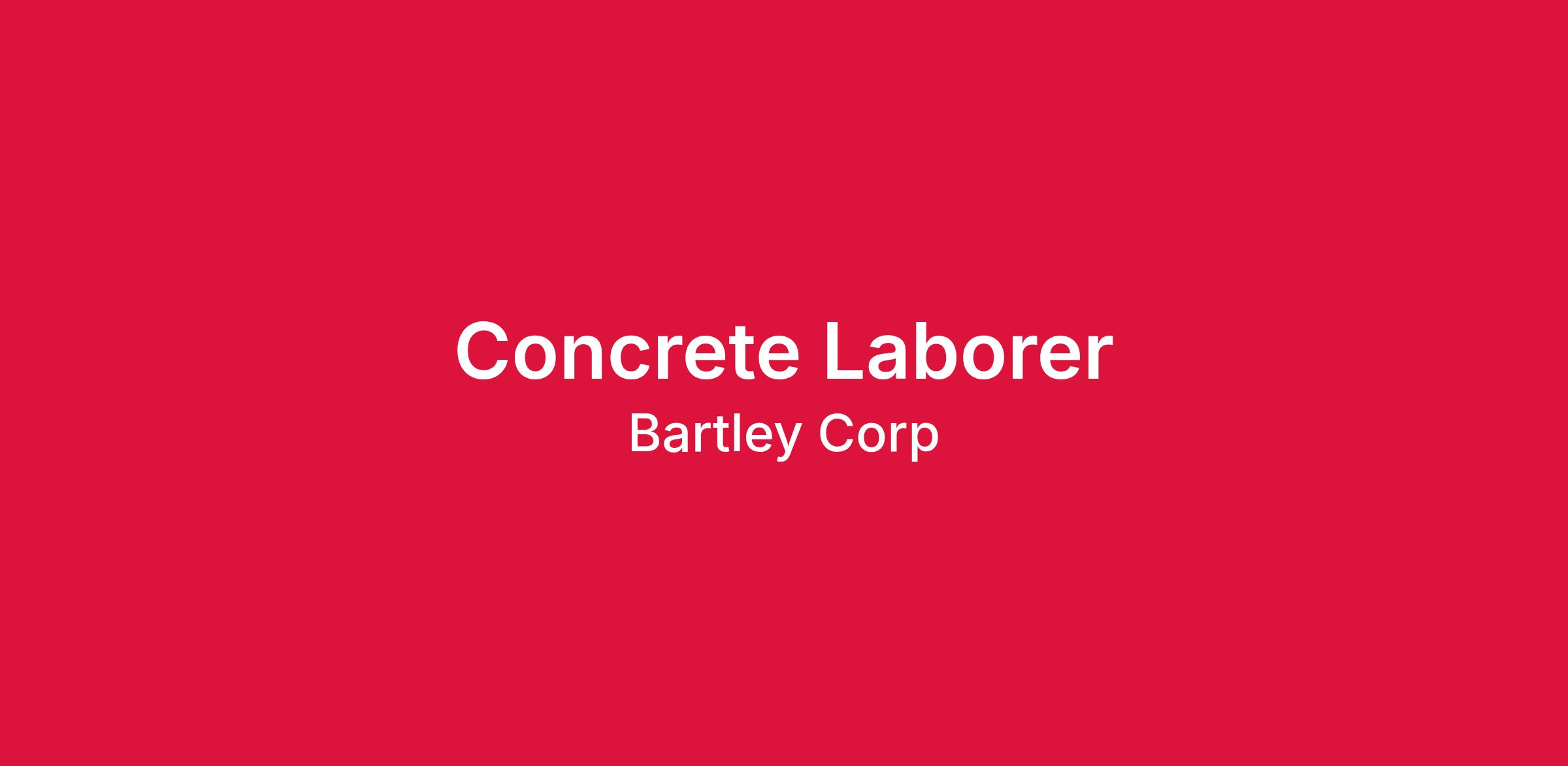 The Bartley Corporation has an immediate opening for a Concrete Footing Laborer