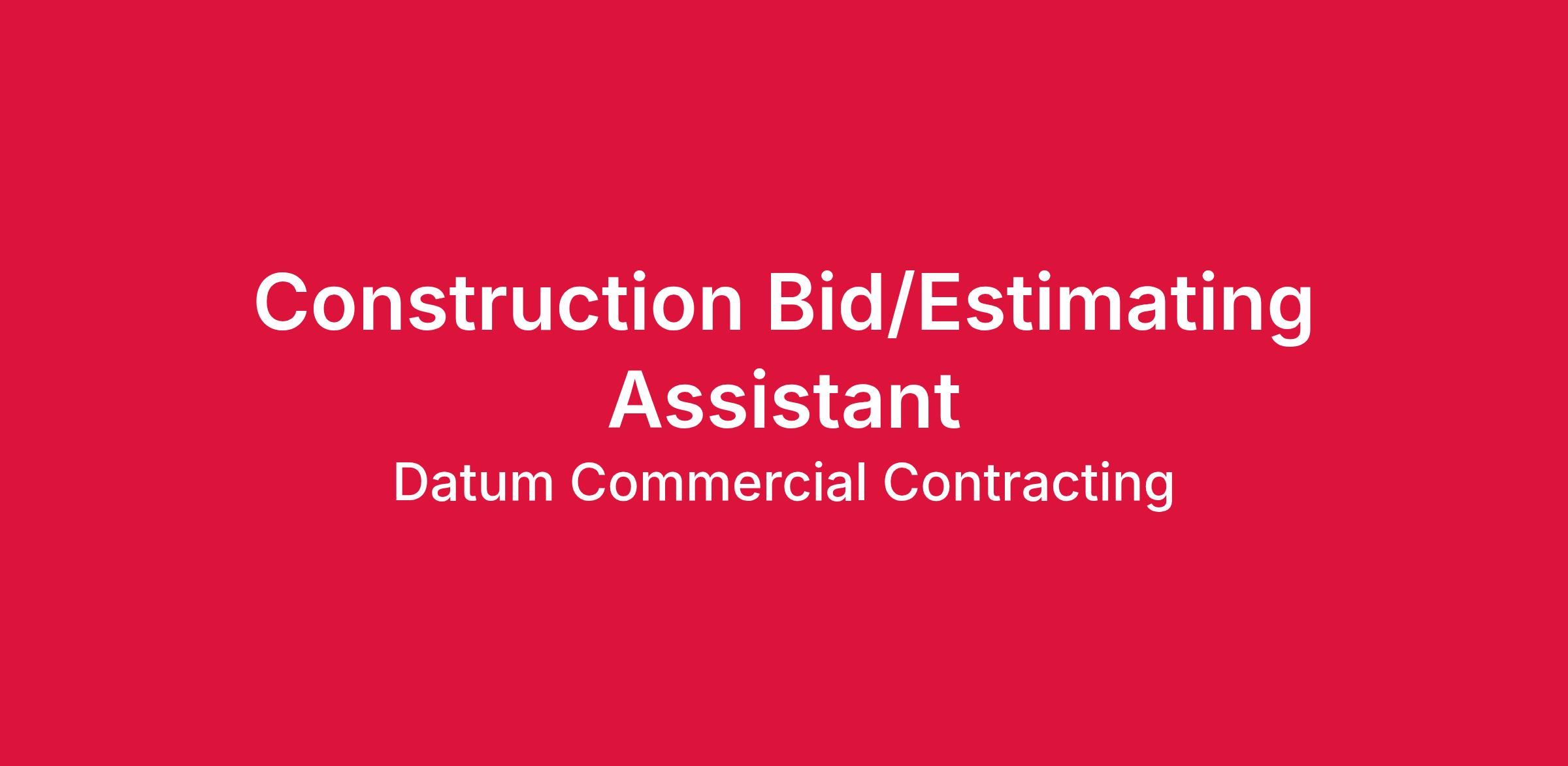 Datum Commercial Contracting is in search of a Construction Bid/Estimating Assistant to join our team in the Austin Office.