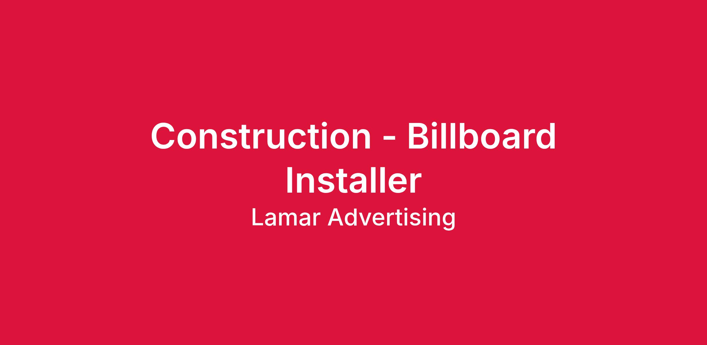 The purpose of this entry-level, full-time position is to install and maintain billboards, including installation of advertisements, maintenance of structures, and the construction upkeep of billboard cosmetics. This position most often works alone and must be able to manage work schedules effectively.