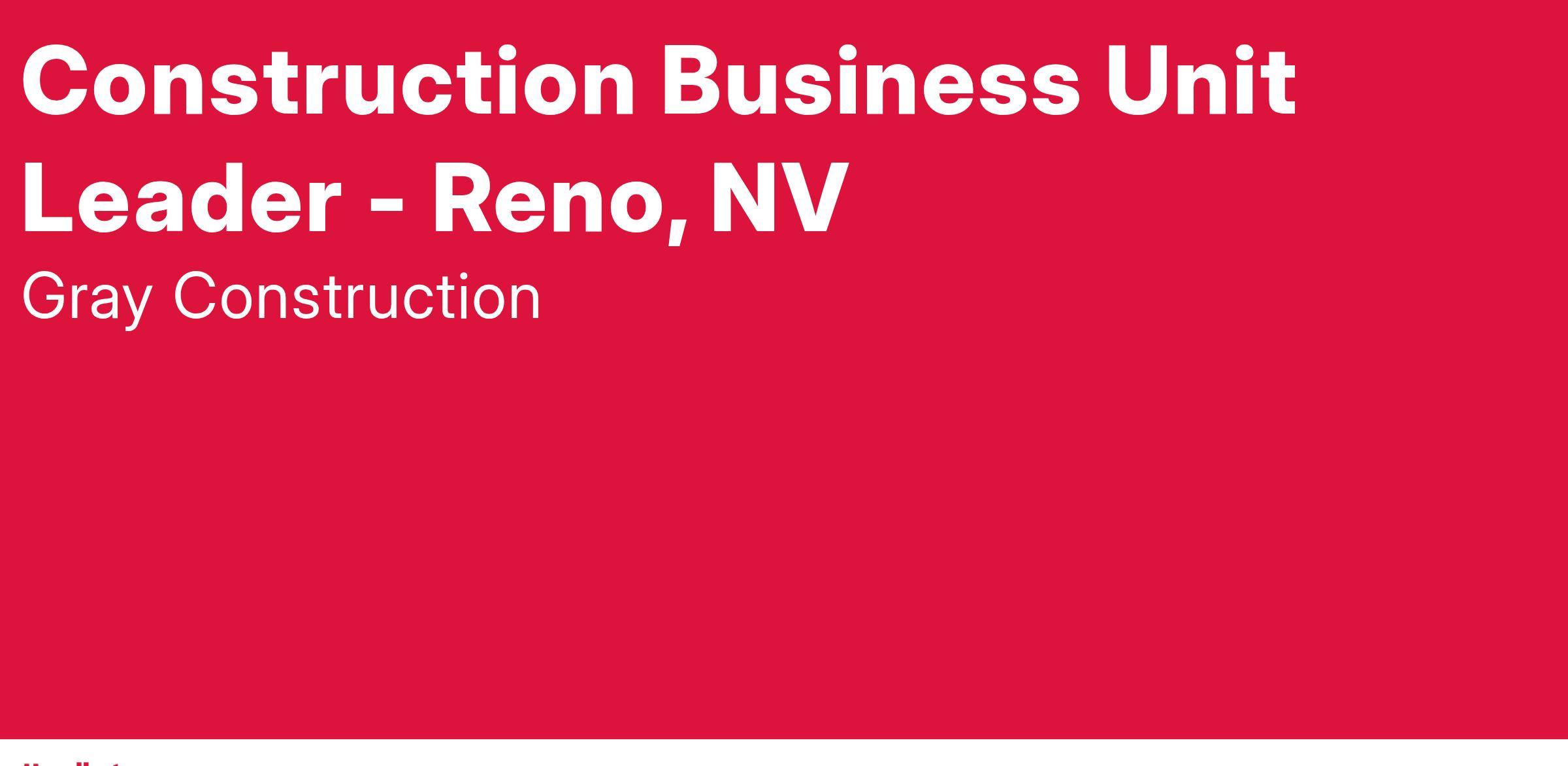 Gray Construction is seeking a Business Unit Leader to join their Data Center market team in Reno, Nevada.