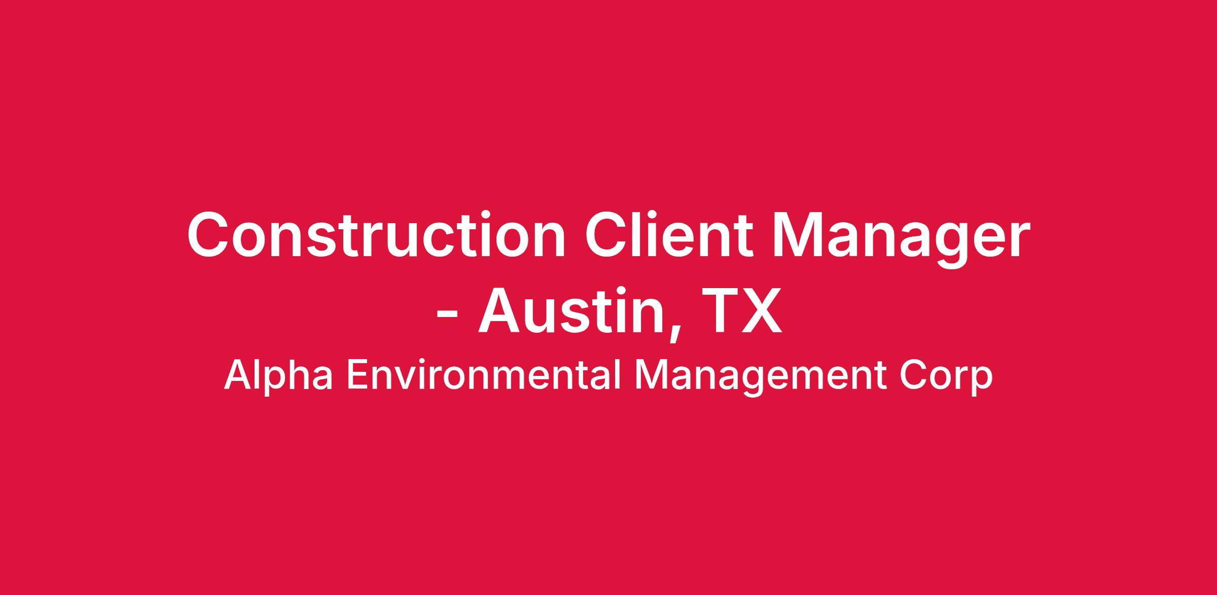 Construction Client Manager - Austin, TX