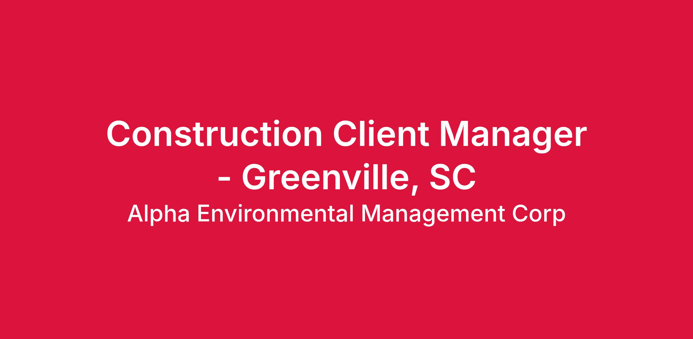Construction Client Manager - Greenville, SC