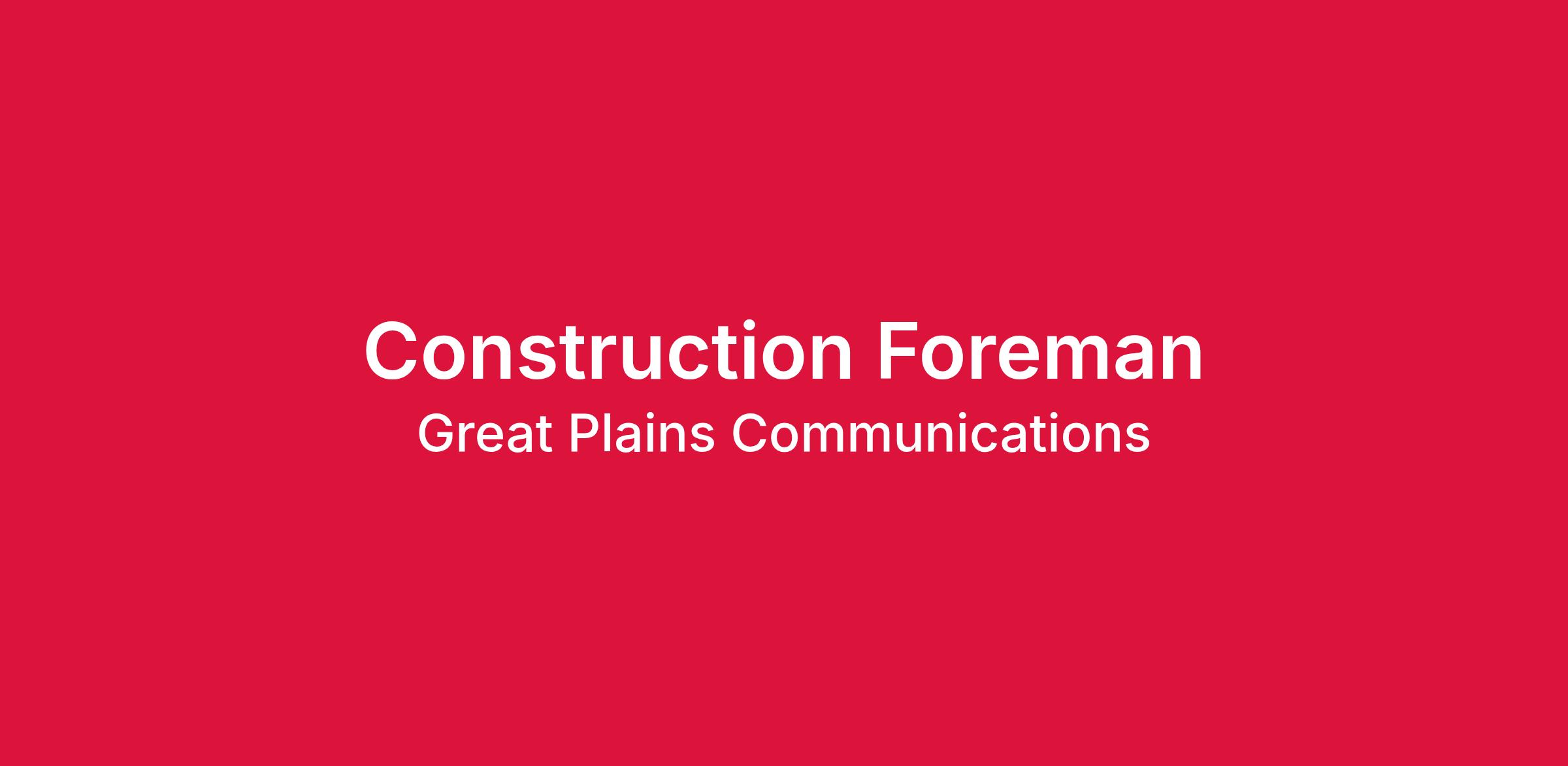 Great Plains Communications is looking for an experienced Construction Foreman for our underground construction company located in Kearney, NE.
