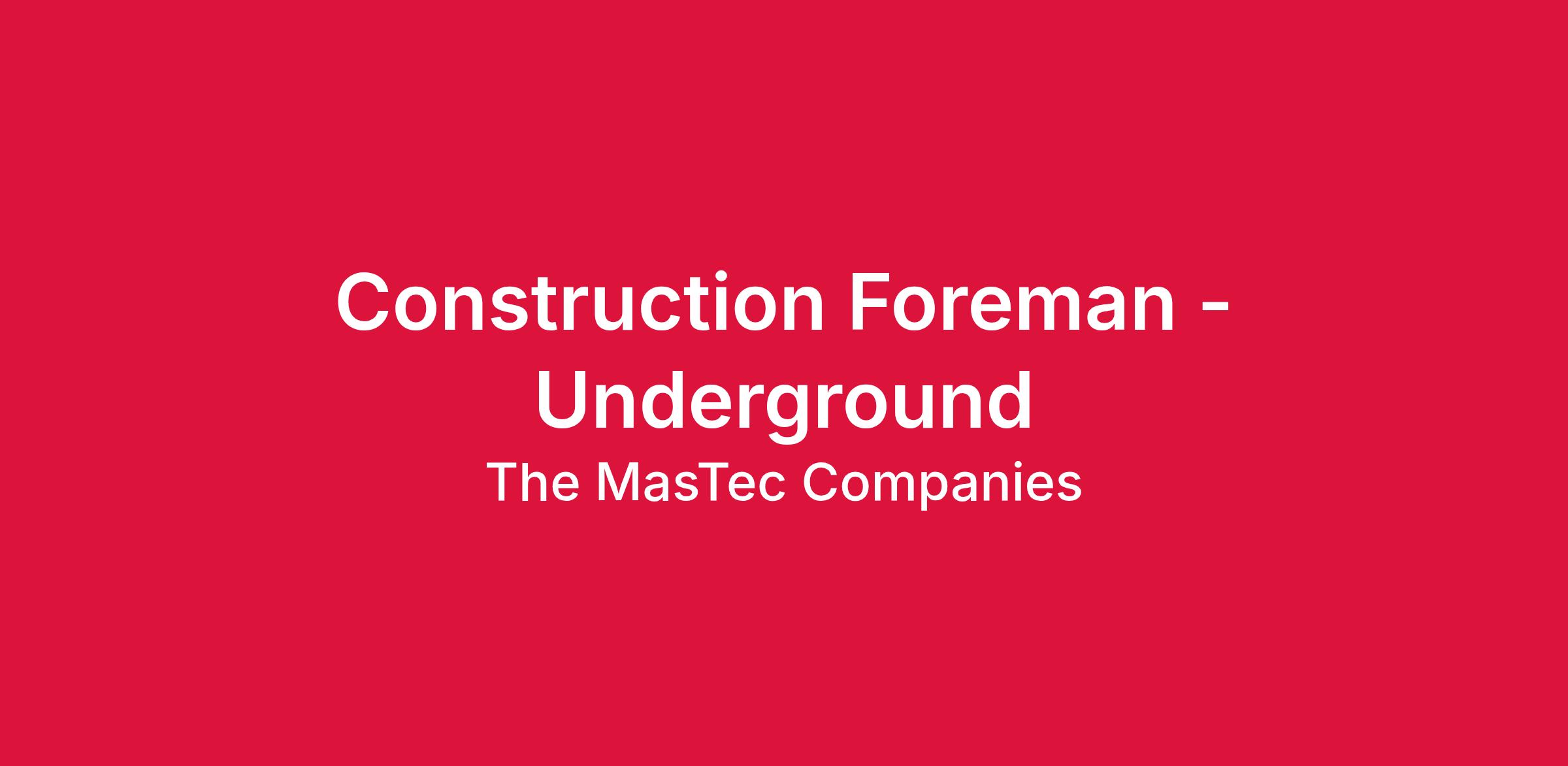 William Charles Construction, a MasTec Company, is currently hiring a Foreman for underground project work in New Albany, IN.