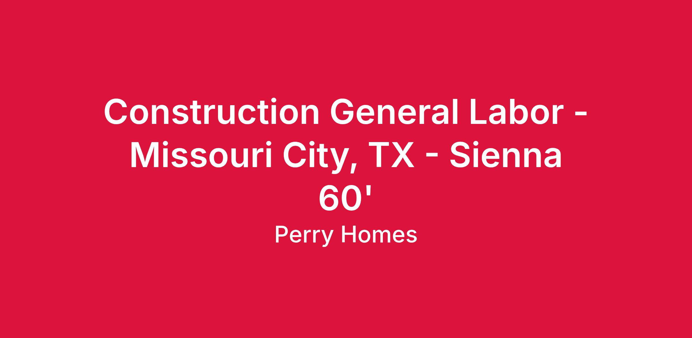 Construction General Labor - Missouri City, TX - Sienna 60'