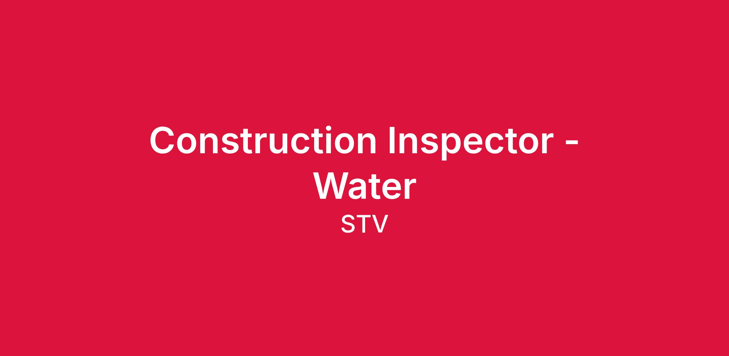 STV has an immediate need in the Austin, TX area for a Construction Inspector for our Water/Wastewater division. The successful candidate will support our current staff while assisting in growing the W/WW Inspection practice to better service our clients statewide.