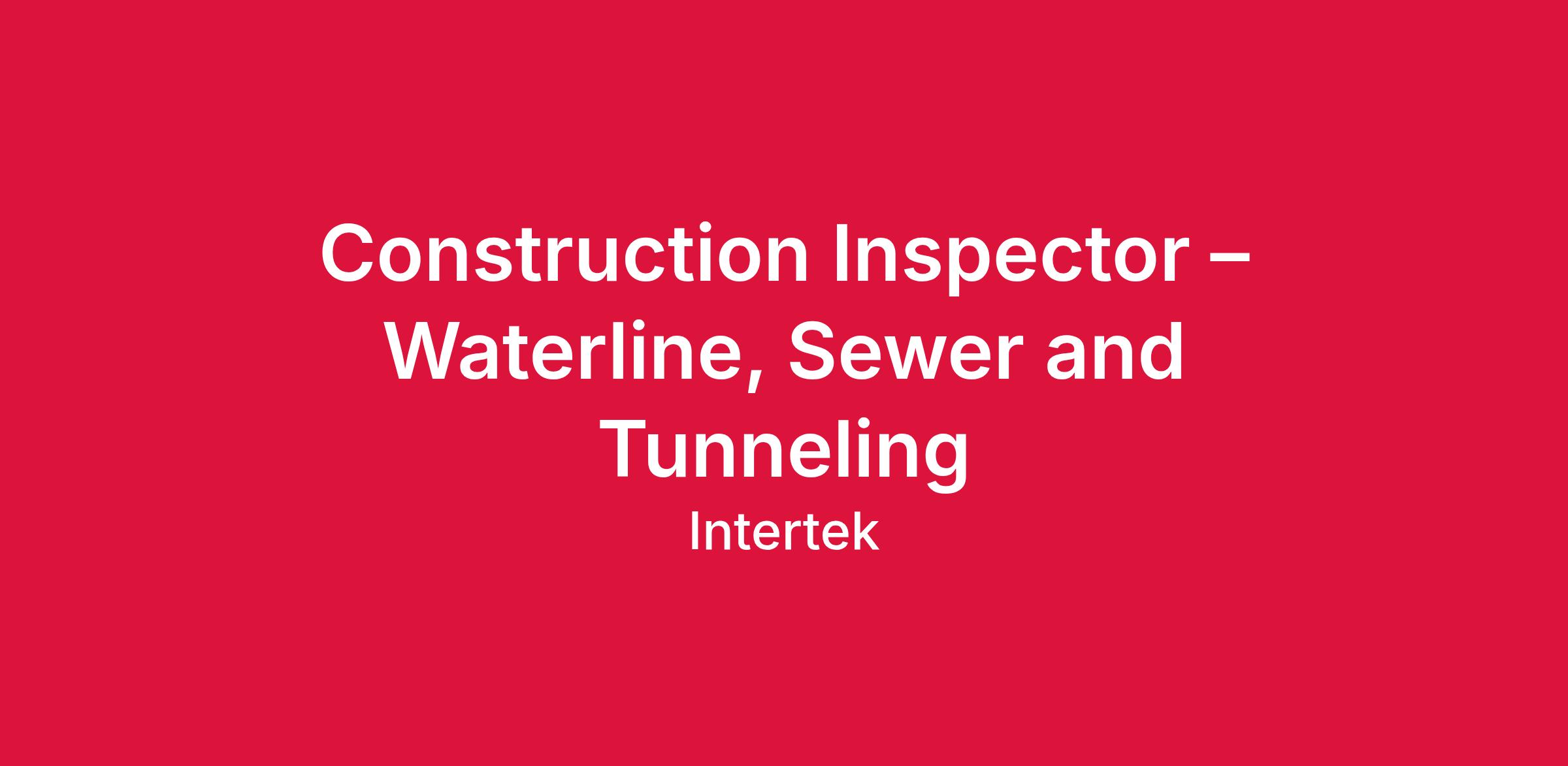 The Construction Inspector - Waterline, Sewer and Tunneling is responsible for ensuring quality, safety and compliance on critical infrastructure projects.
