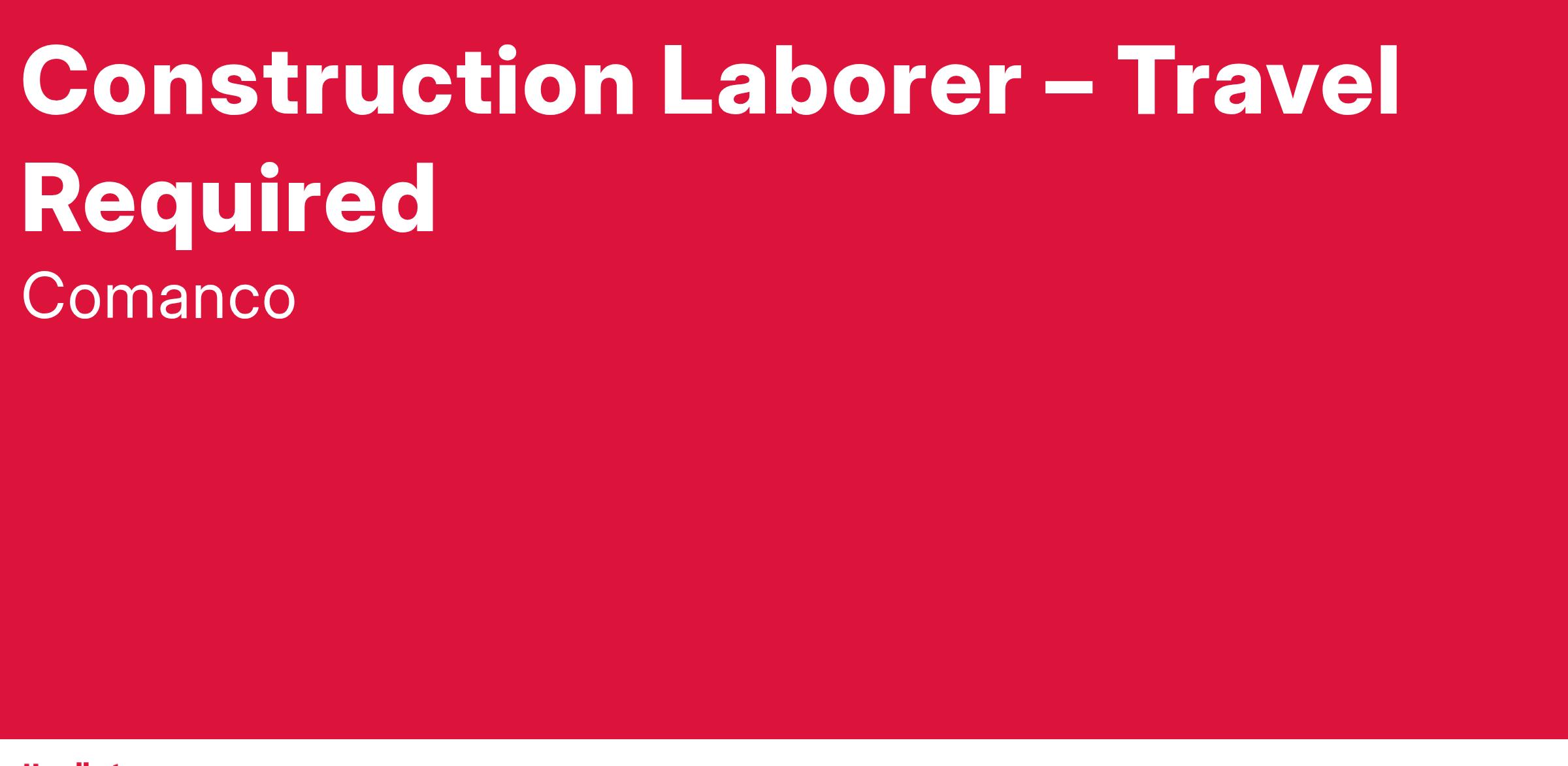 Join COMANCO for this full-time job opportunity to work as a Construction Laborers at construction sites in different States- we provide hotel/motel, and daily per diem while traveling away from home.