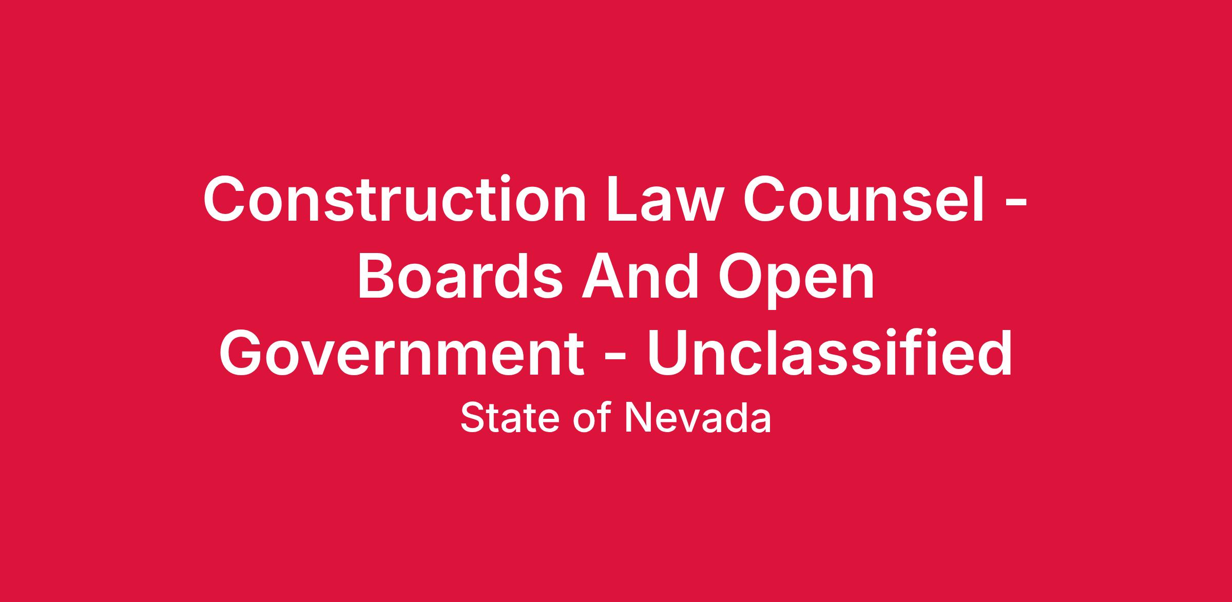 Knowledge: This position requires knowledge of substantive law and regulations relevant to construction law generally, and Nevada construction law specifically, including experience developing construction contract terms and conditions. Experience advising construction project management is preferred. Public-sector construction contracting experience is preferred, including knowledge of NRS 338 and NAC 338. Candidates should have experience in construction litigation, mediation, and arbitration, with documented first- or second-chair construction litigation experience preferred. Familiarity with construction-related bonds and insurance, as well as a strong background in settlement negotiations, is preferred. Knowledge of substantive law and regulations related to leasing and purchasing contracts, and Nevada’s Open Meeting Law, is also preferred.