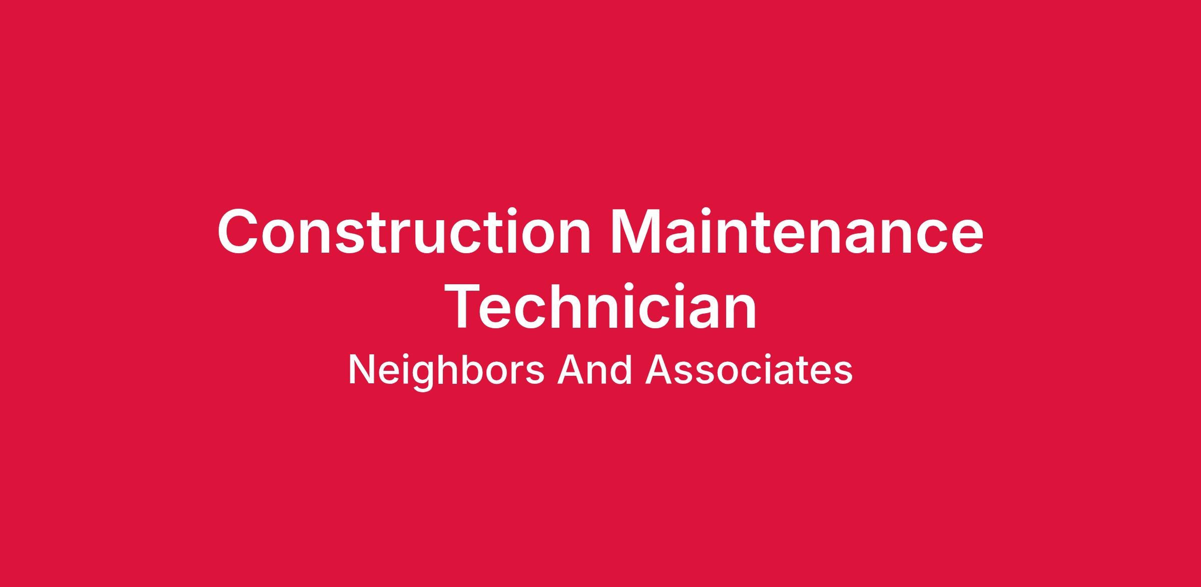 Construction Maintenance Technician Work Environment: