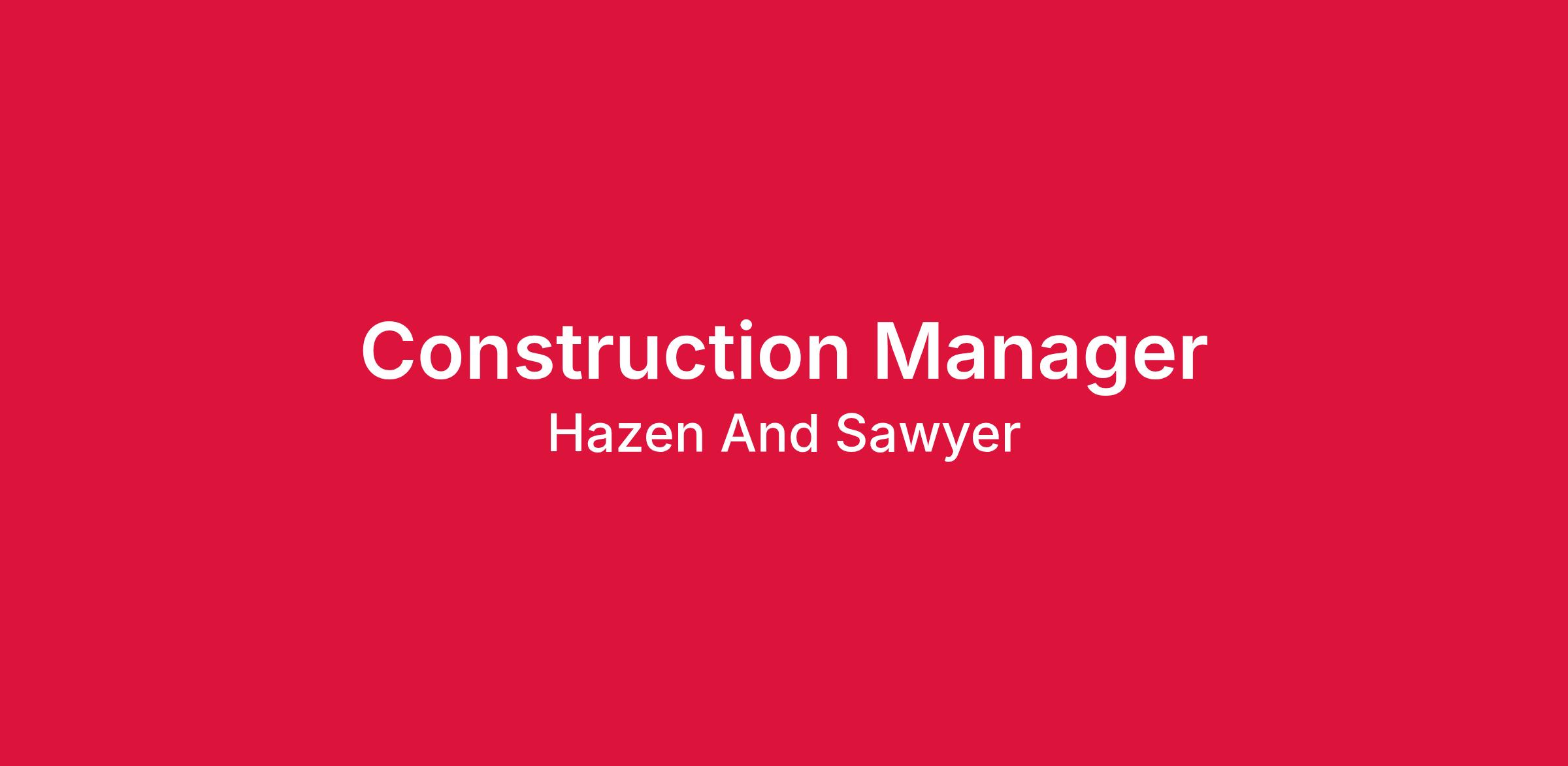 Hazen and Sawyer has an exceptional opportunity for a Construction Manager to support the construction of water and wastewater treatment facilities and infrastructure. Duties include management of the construction, coordination, documentation, and inspection activities for various water and wastewater facilities and infrastructure. Travel within the area may be required.