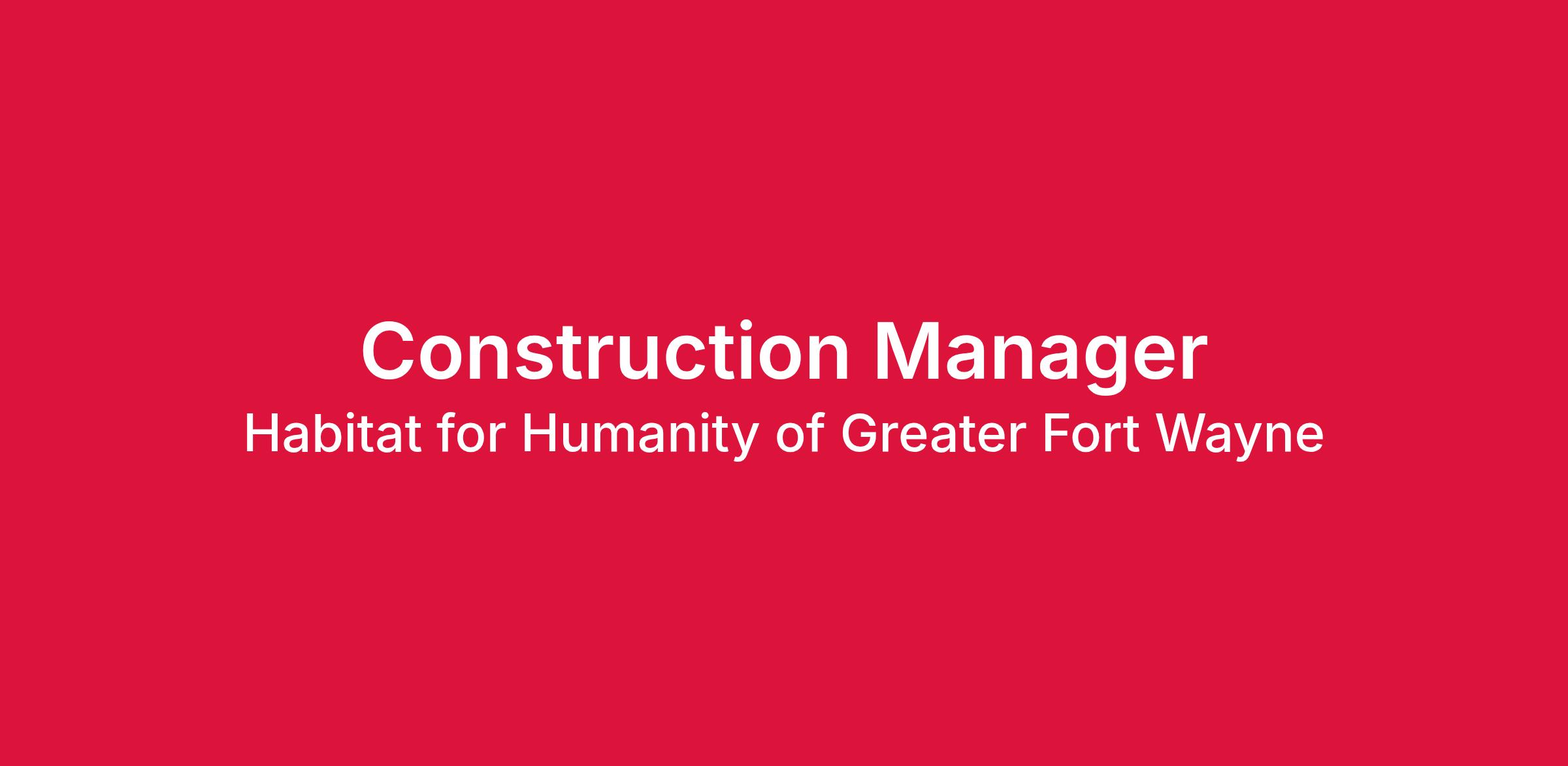 The Construction Manager will be responsible for the successful planning, execution, and closing of all residential construction projects. This role manages the professional side of the build with vendors and subcontractors so the Site Managers can focus on the heart of the mission of volunteers and families.