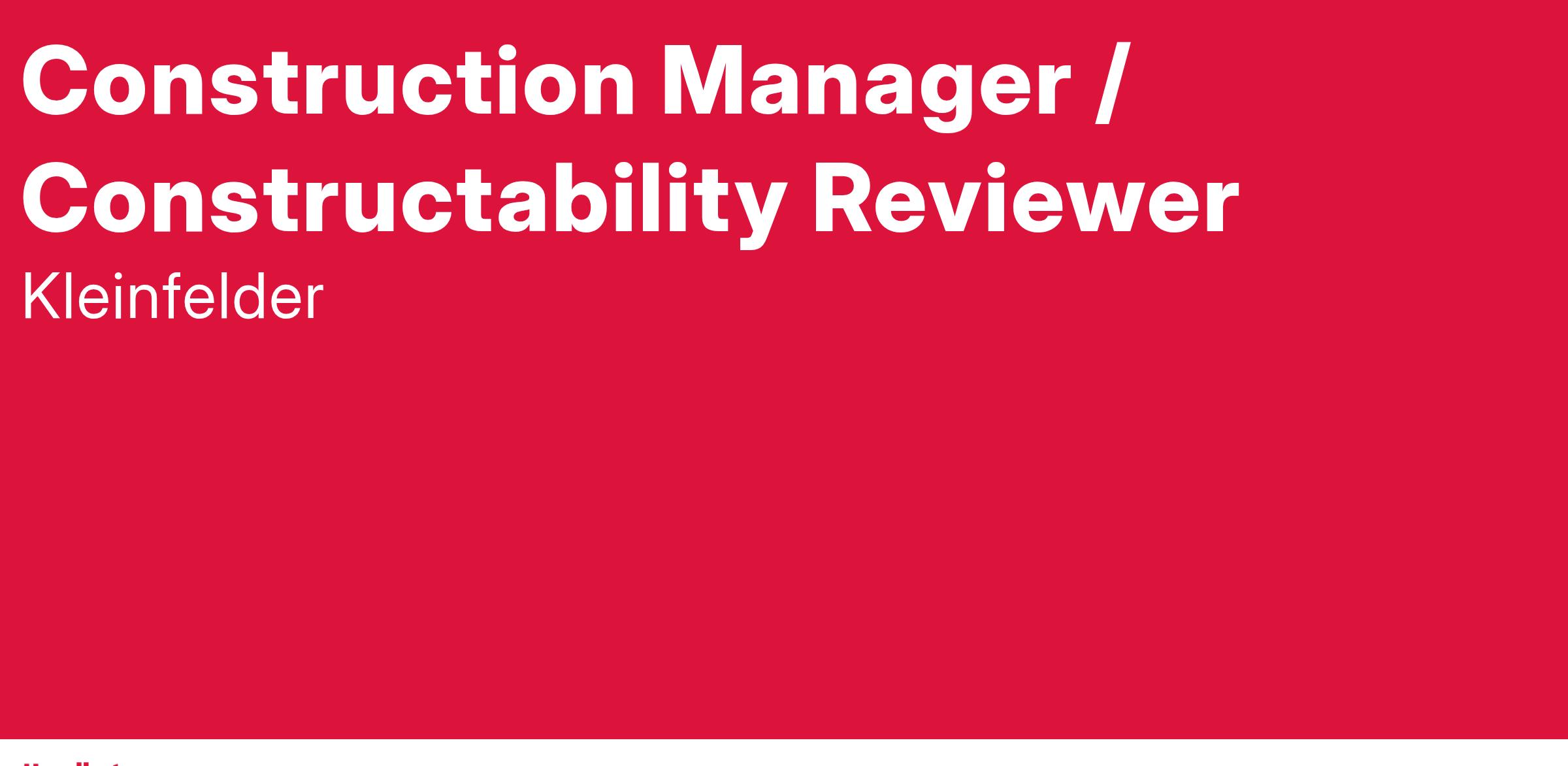 Doucet, a Kleinfelder Company is looking for a skilled and experienced Construction Manager / Constructability Reviewer for civil construction projects. The ideal candidate will have a strong background in construction of civil infrastructure and have solid foundational knowledge of means and methods for civil construction. This candidate will be adept at managing project plan reviews and submittals and have experience coordinating with contractors, engineers, and inspectors. A strong ability to problem solve is key for this position.